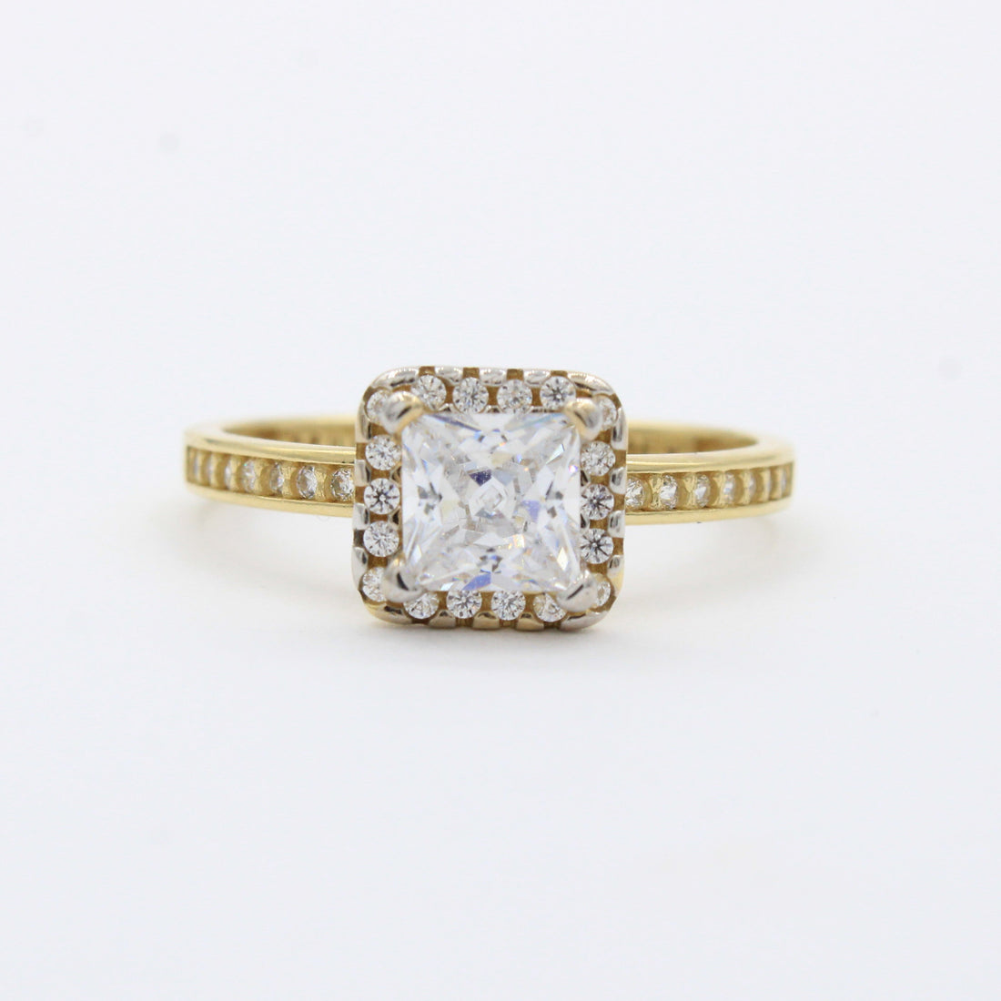 Anillo de Compromiso en Oro 14k Modelo Elegante con Incrustación Especial de Zirconias mod. 10270