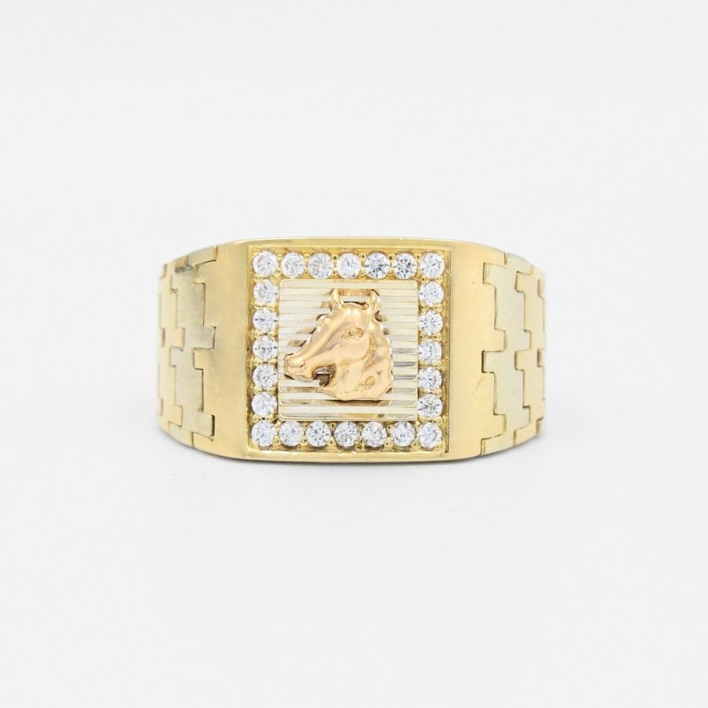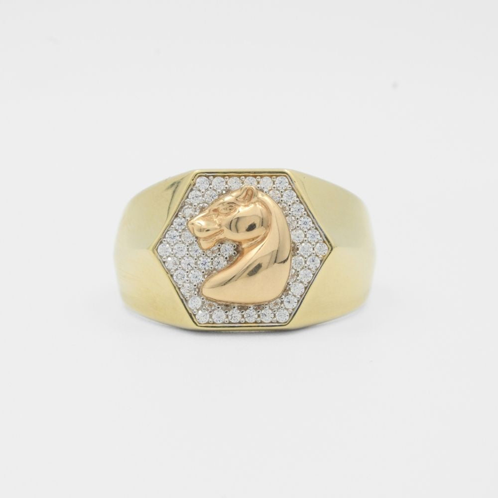 Anillo de Caballo Brillante en Oro Florentino con Zirconias y Diamantado mod. 6001