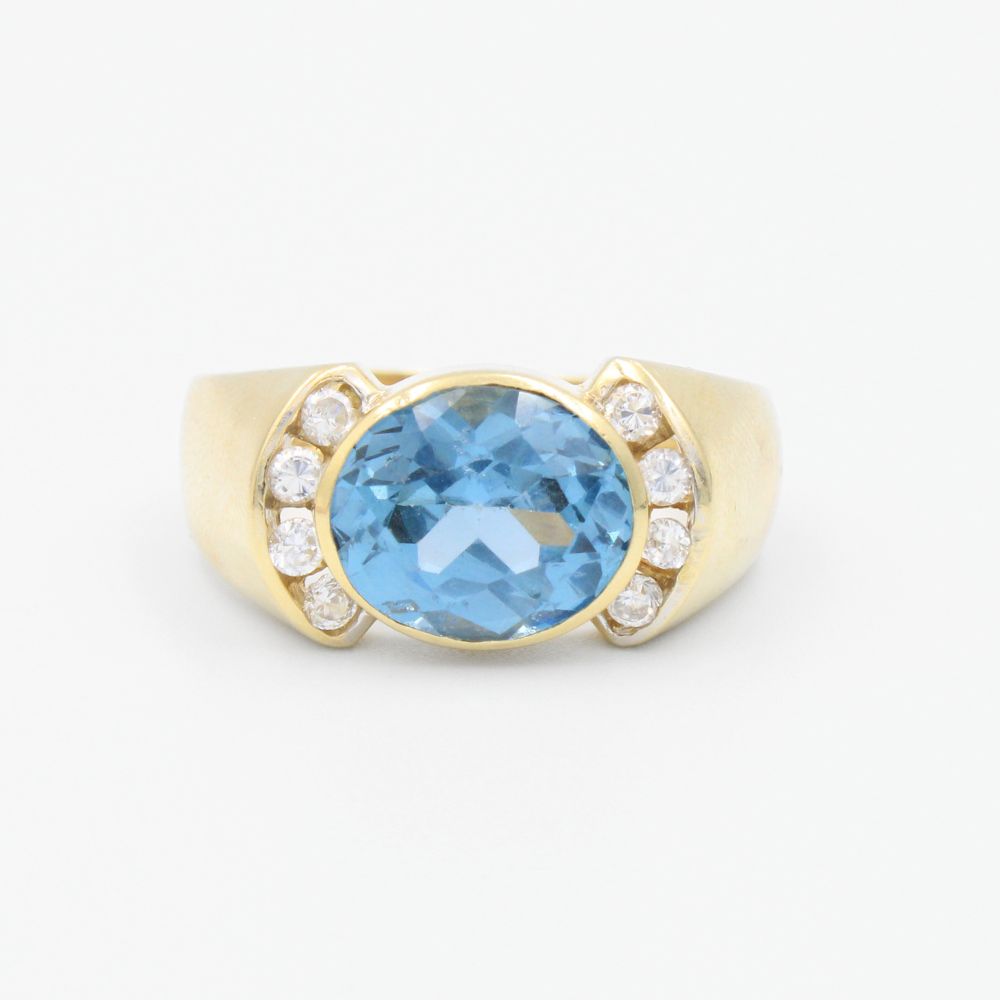 Anillo con Zirconias y Lapislazuli Natural mod. 5662 - Joyería Orovel’s