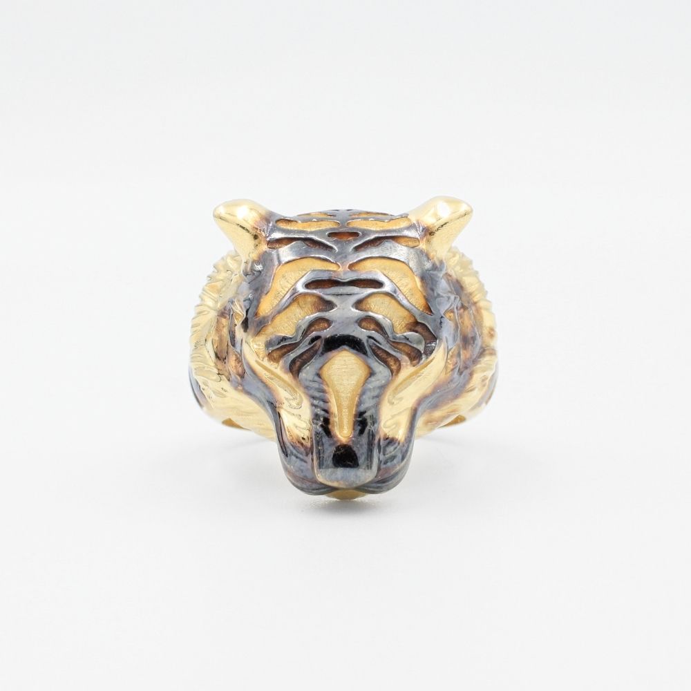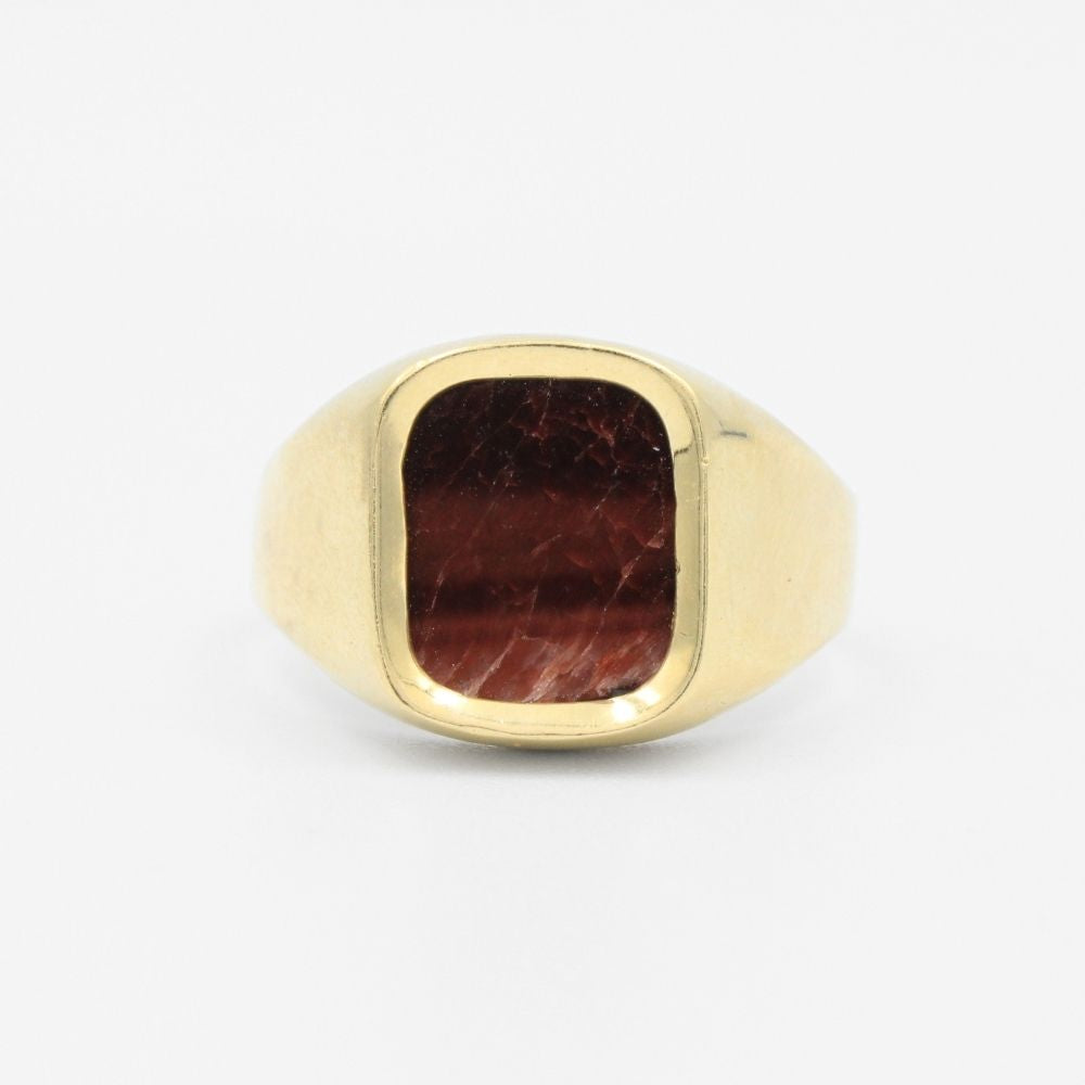 Anillo de Oro 14k de Diseño Brillante con Incrustación de Ojo de Tigre mod. 1962