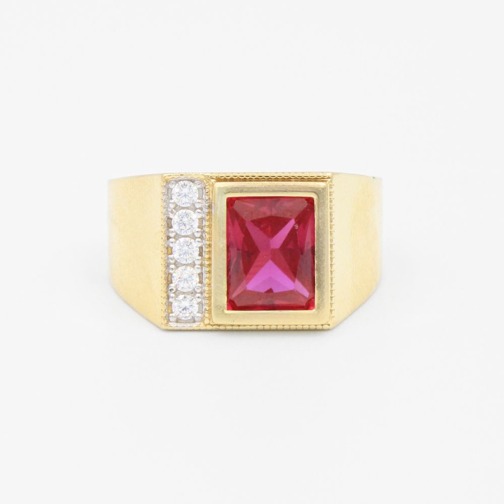 Anillo de Oro 14k con Zirconia Color Rojo Rubí de Diseño Fino mod. 1963