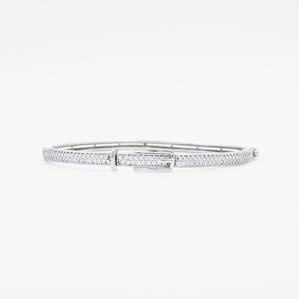 Aro de Oro 14k Blanco en Diseño Hueco e Incrustado con Zirconias Finas mod. 8992