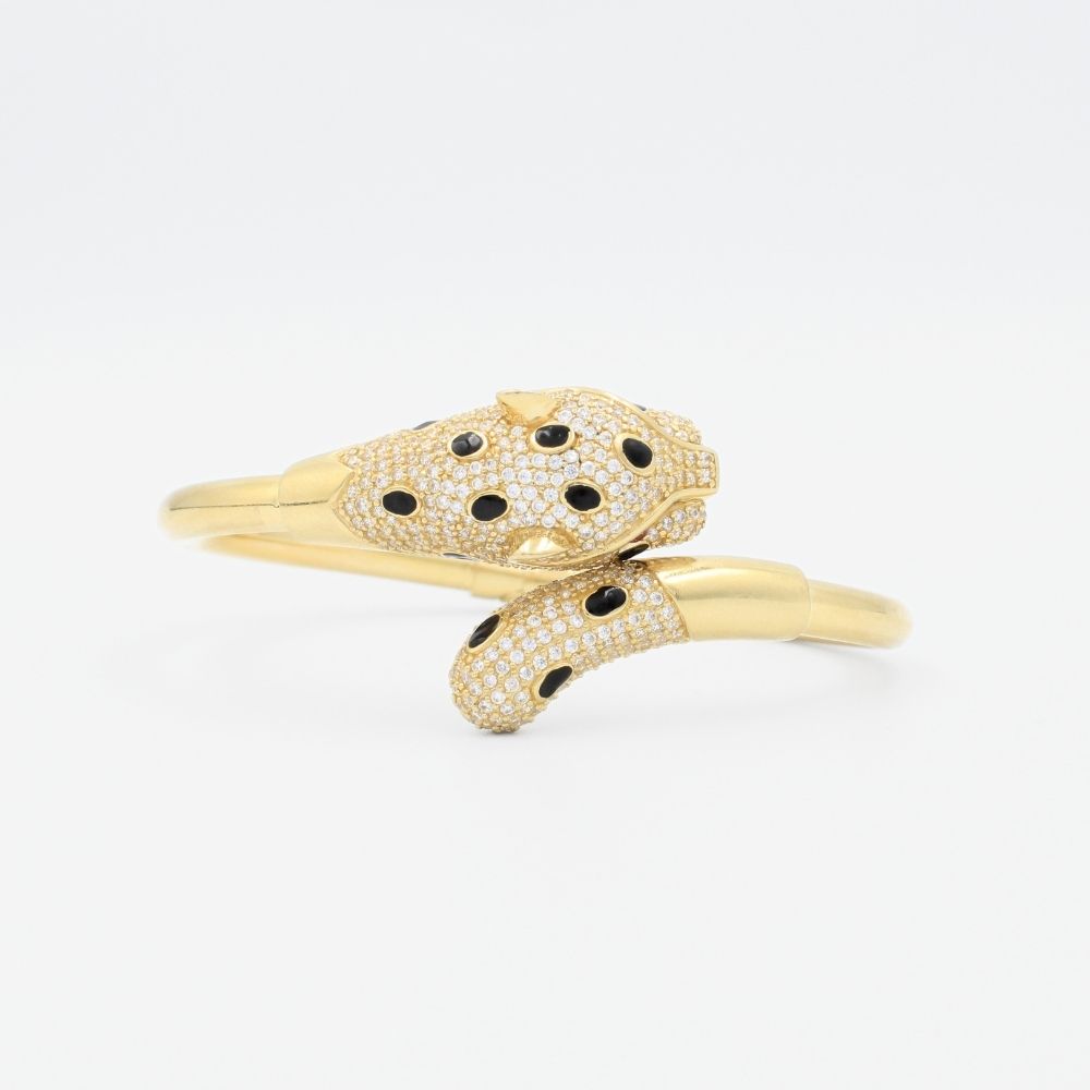 Aro de Oro 14k Hueco Especial con Pantera Incrustada de Zirconias Finas mod. 8995