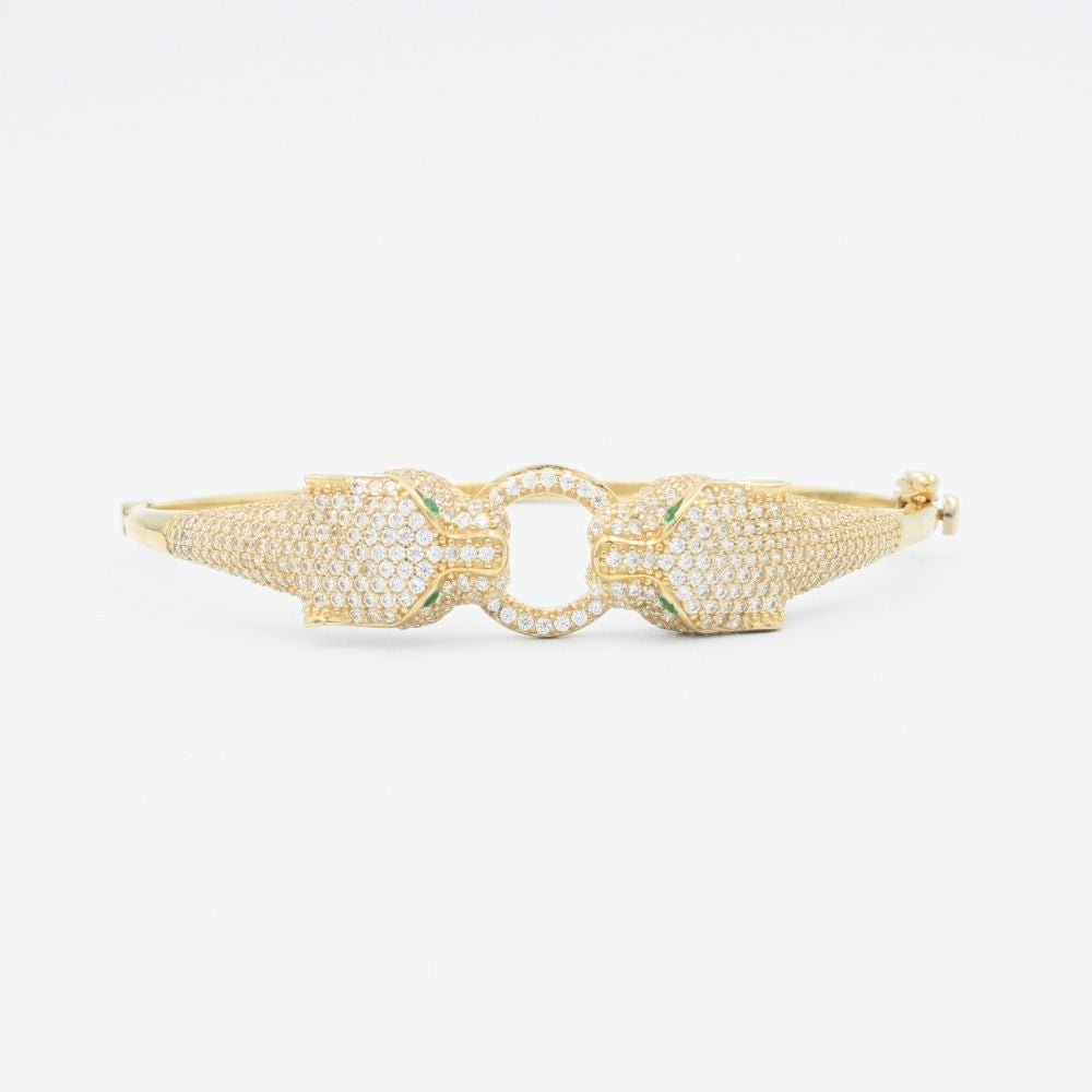 Aro de Oro 14k Hueco con Panteras Incrustada de Zirconias Brillantes de Ojos Verdes mod. 8997