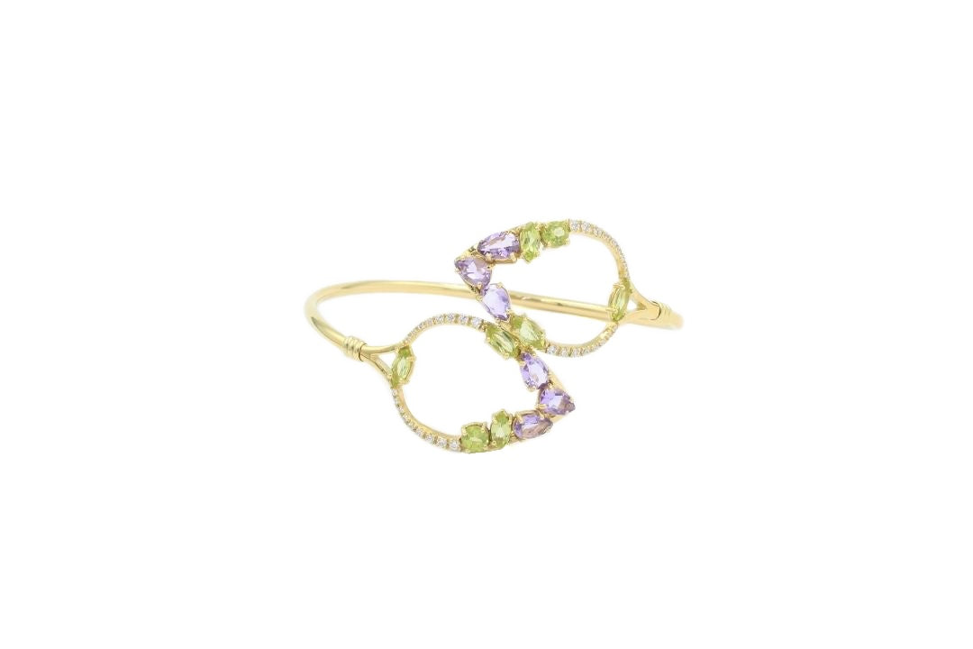 Aro de Oro 14k Diseño Especial Barra con Tréboles Verdes Detallado con Zirconias Finas mod. 9752