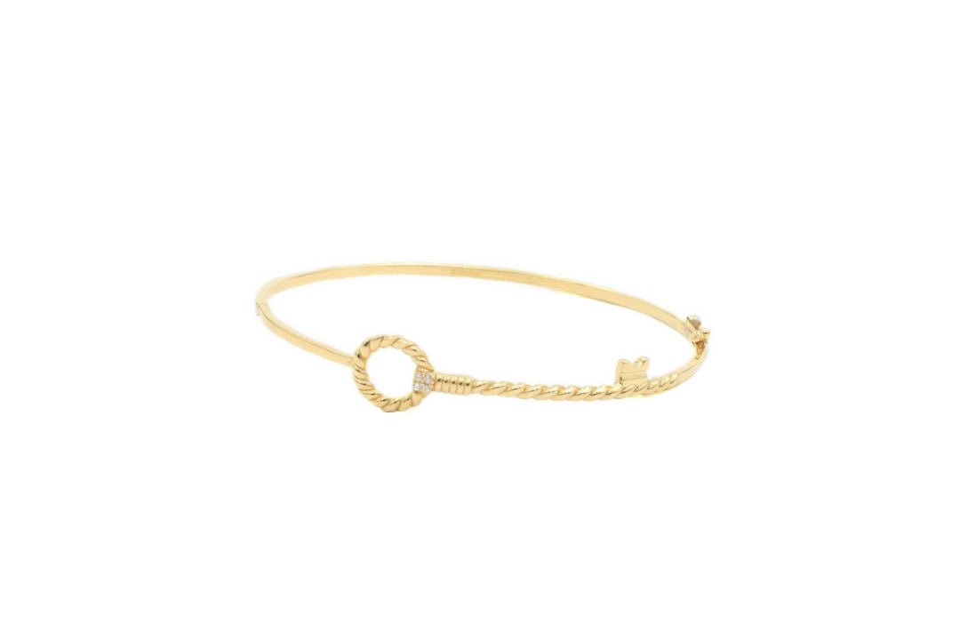 Aro de Oro 14k Tubular Hueco de Estilo Abierto en Diseño de Llave con Zirconias mod. 7466
