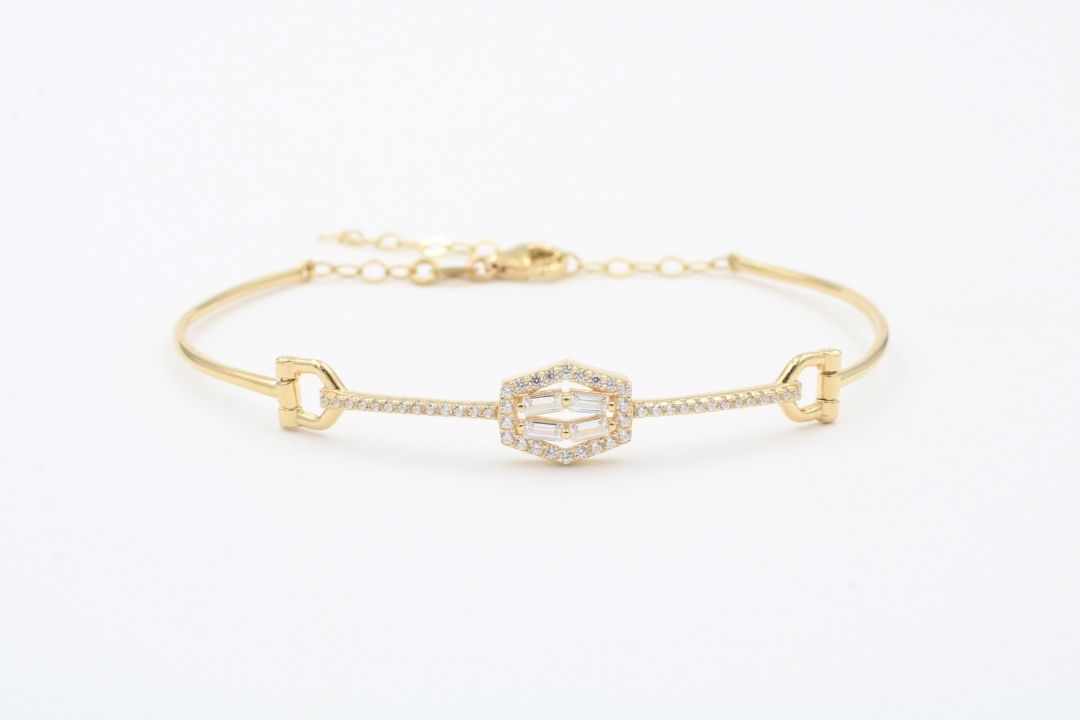 Aro de Oro 14k con Extensible y Diseño Incrustado con Zirocnias Baguette mod. 2926