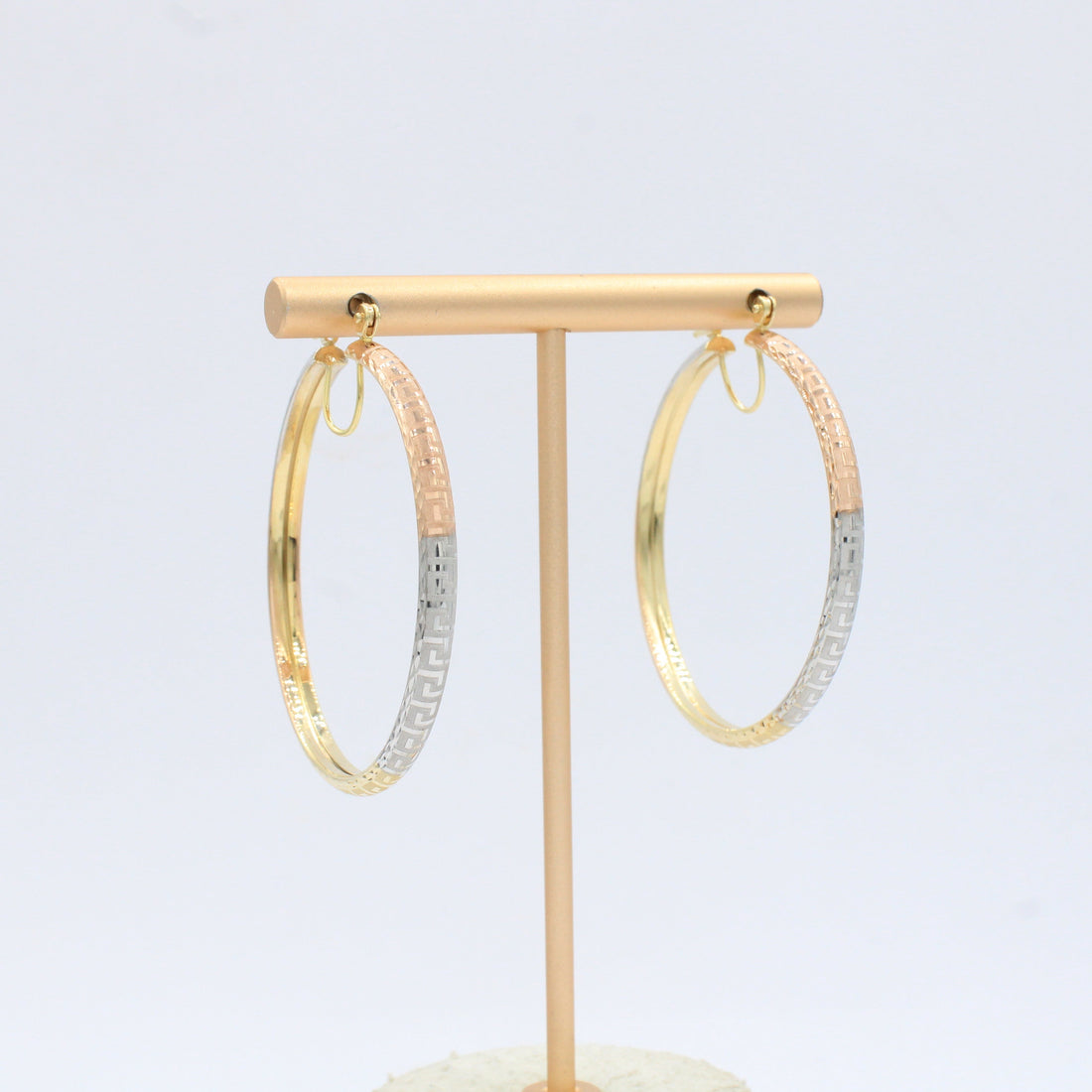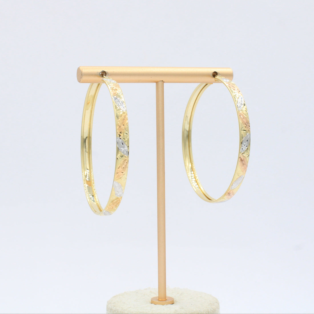 Arracada de Oro 14k de 3 Colores con Diseño Diamantado Especial mod. 10038
