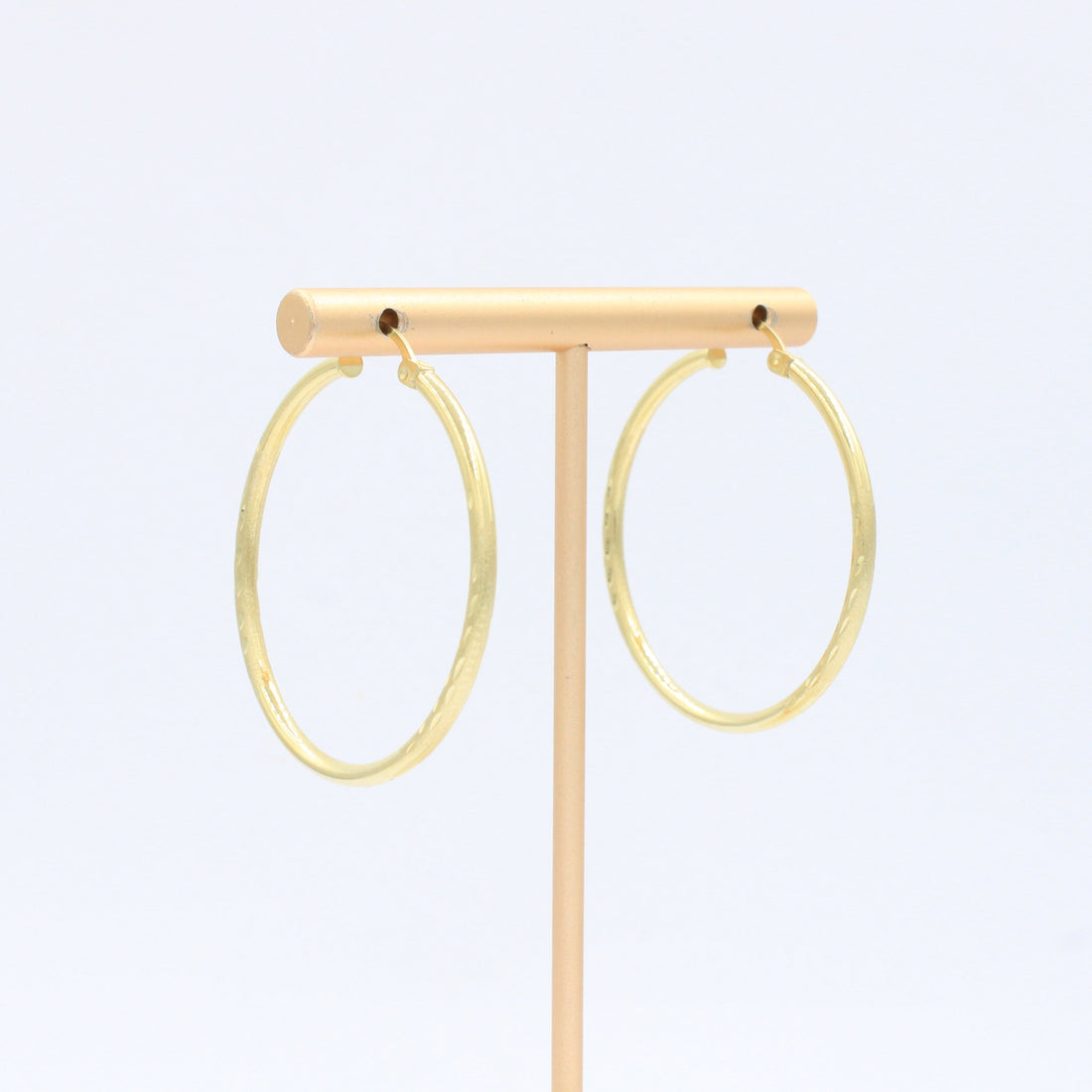Arracada de Oro 14k Diseño Oval Hueco con Rayado de Tonos Mate mod. 9774