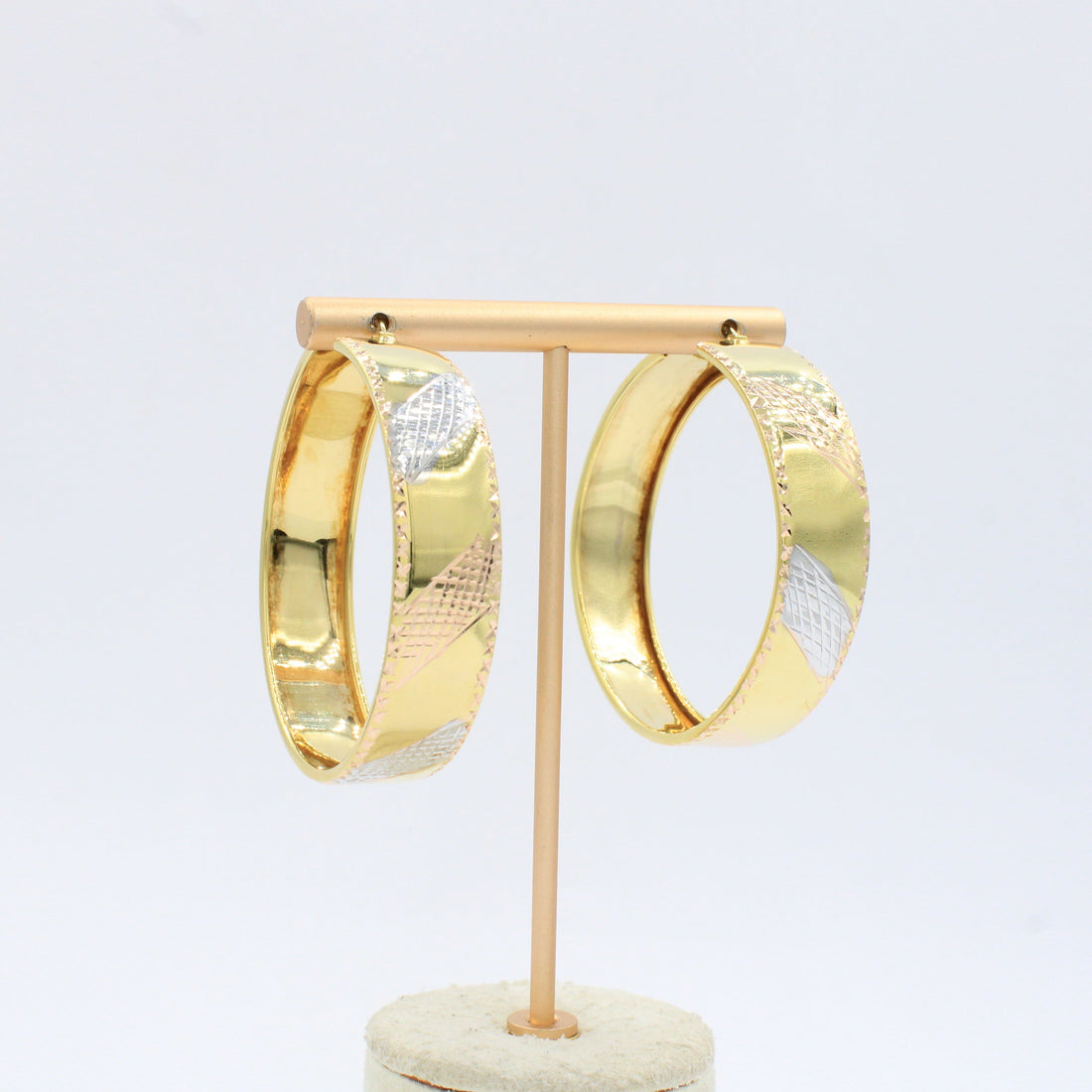 Arracada de Oro 14k Diseño Big con Diamantado Fino de 3 Colores mod. 9773