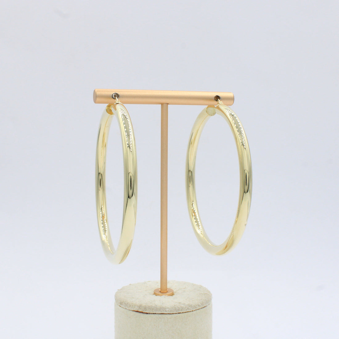 Arracada de Oro 14k Diseño Redondo Hueco de Estilo Liso Brillante mod. 10036