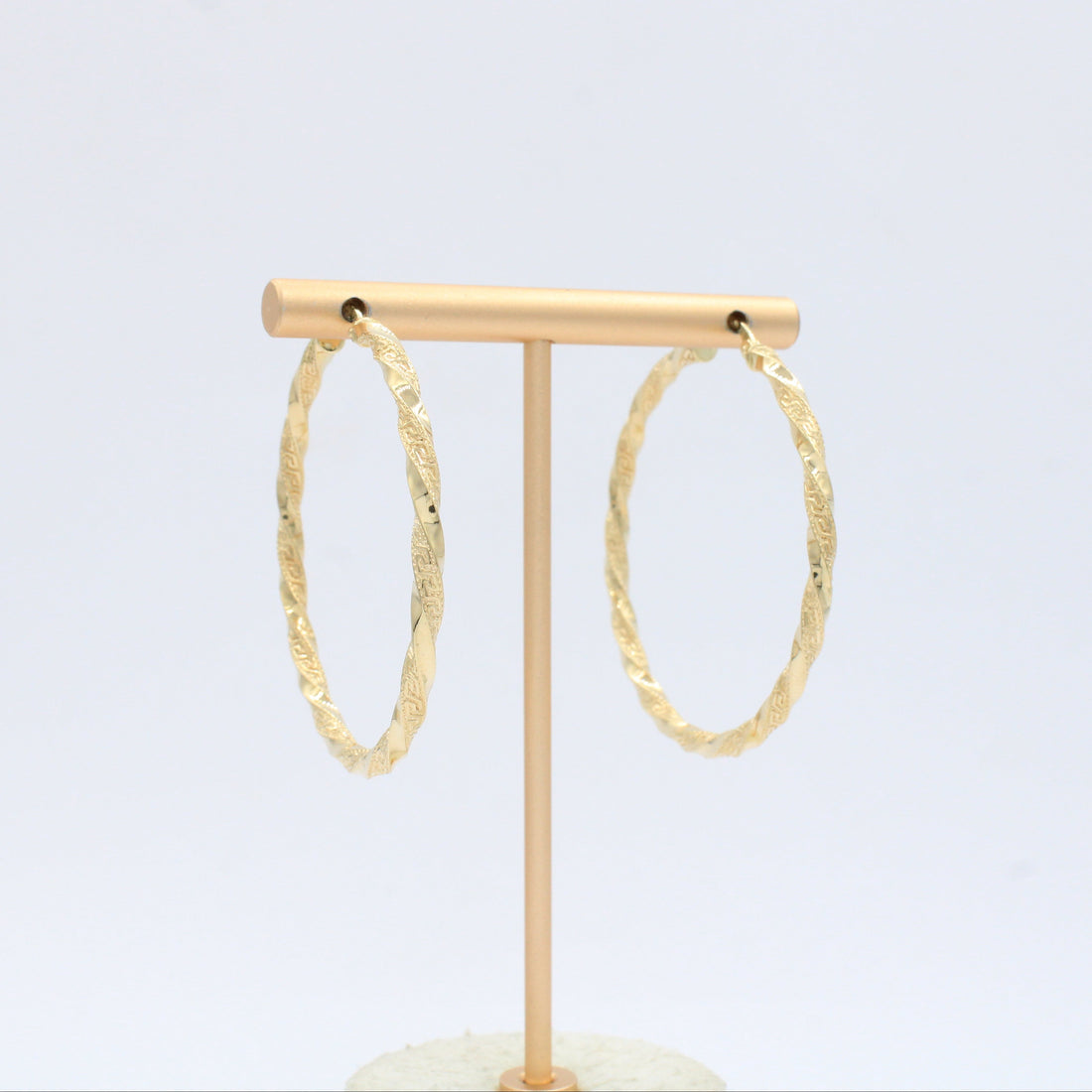 Arracada de Oro 14k Diseño Hueco Torzal Detallado con Grecas mod. 10154