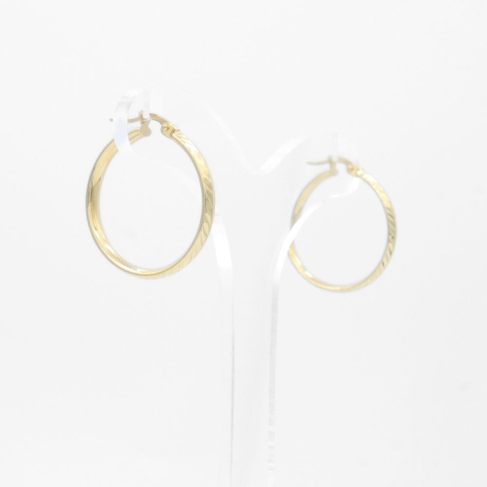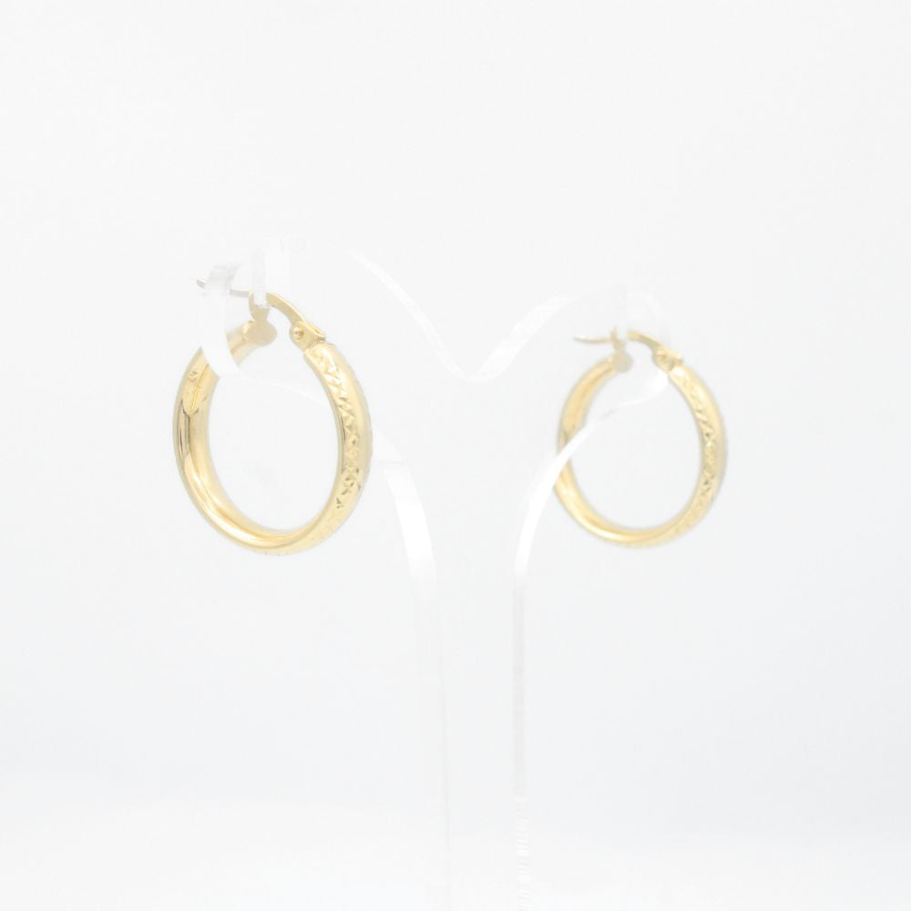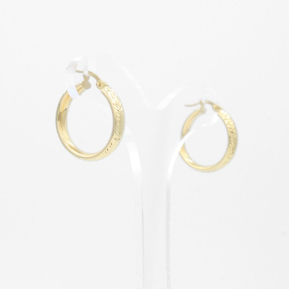 Arracada de Oro 14k Acanalada Hueca con Diseño Diamantado Fino mod. 8761