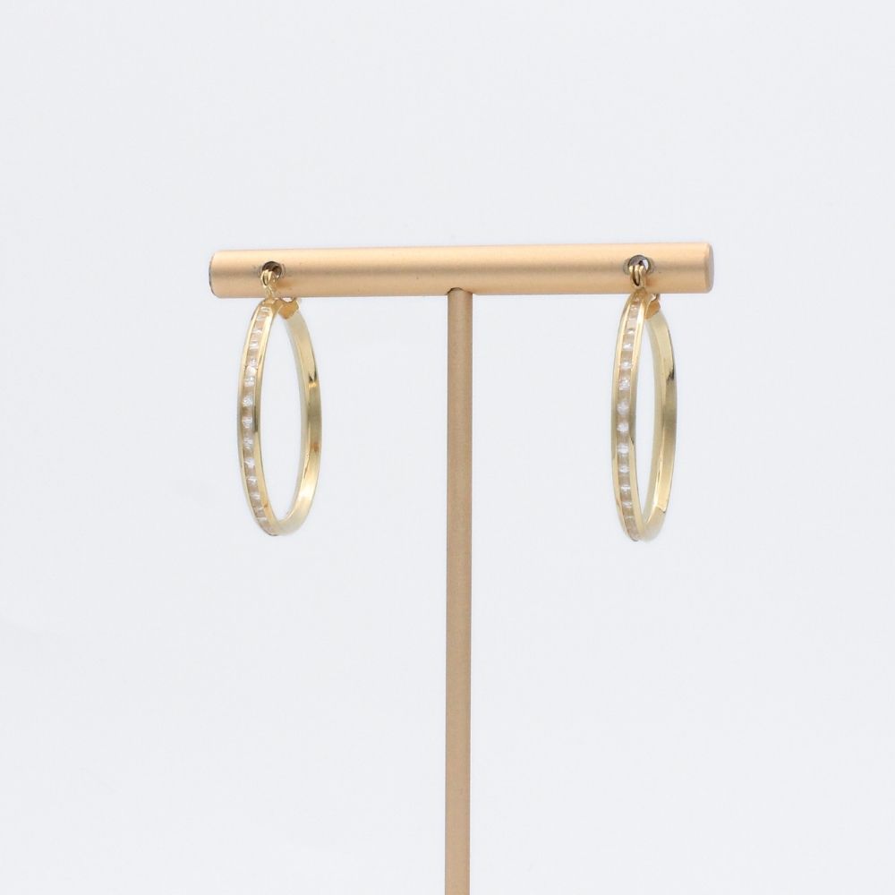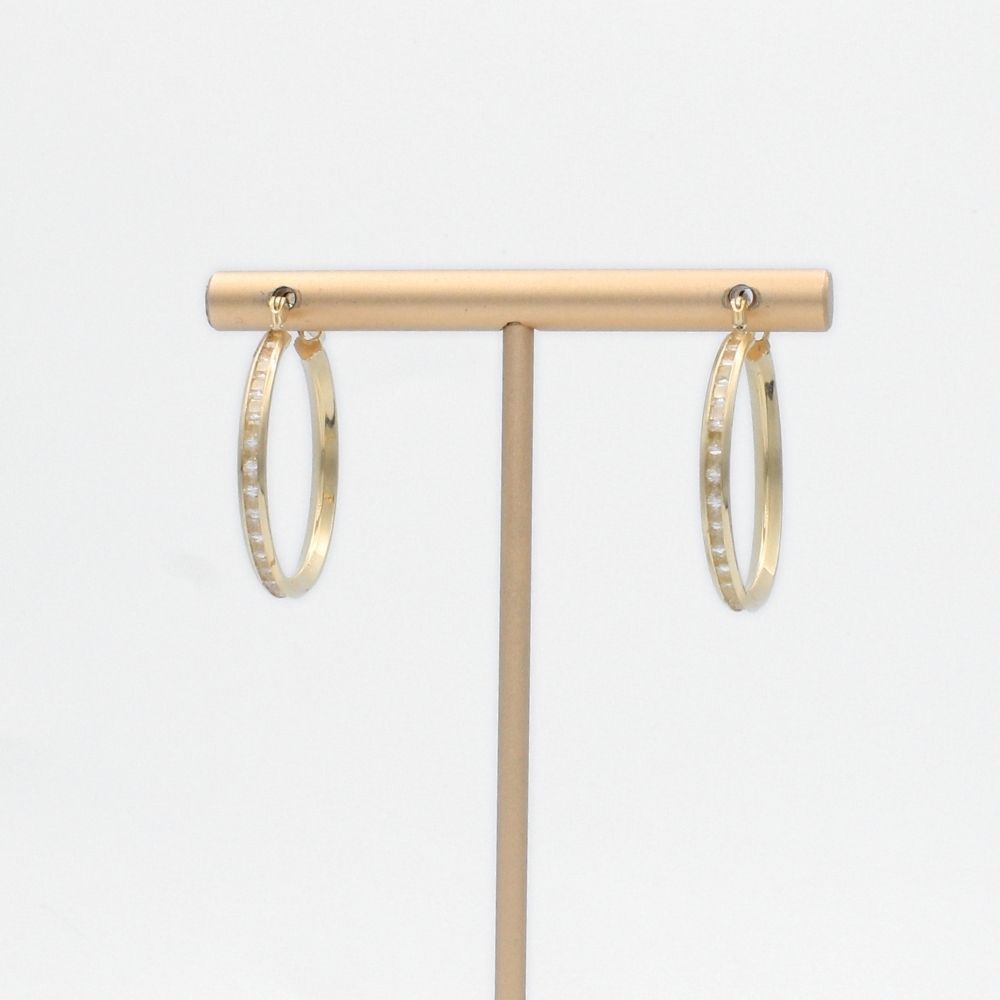 Arracada de Oro 14k de Diseño Hueco Redondo con Incrustación de Zirconias mod. 9875