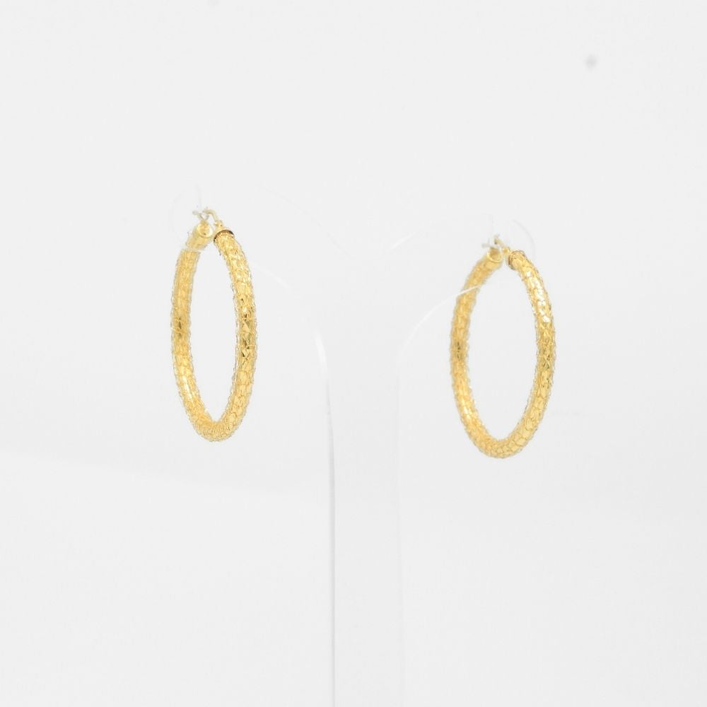 Arracada de Oro 14k Diseño Circular Hueco con Rombos en Diamantado Fino mod. 9775