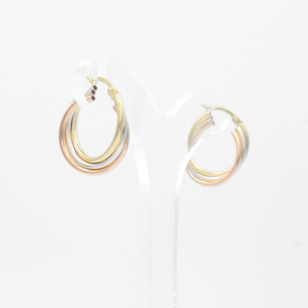 Arracada de Oro 14k de Diseño Tubular Hueco en Tres Tiras Florentinas mod. 8764
