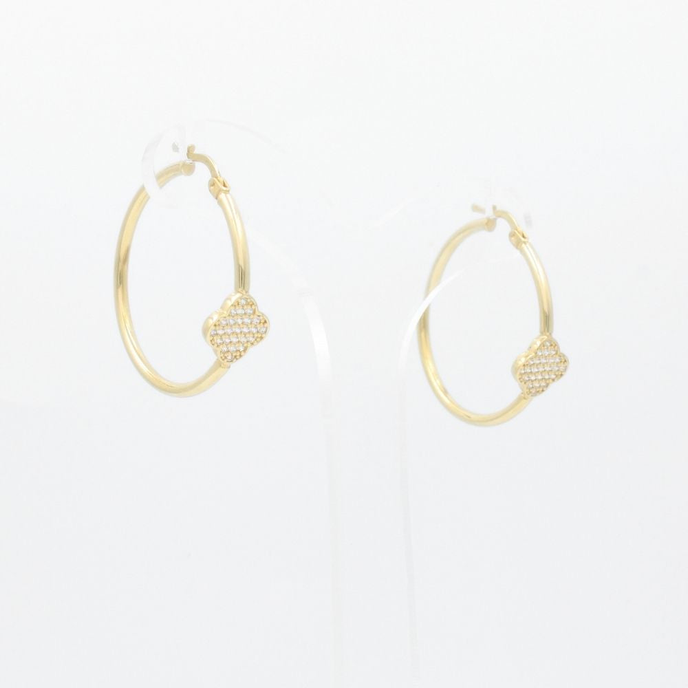 Arracada de Oro 14k Tubular Hueca con Trébol de Zirconias Finas mod. 8755