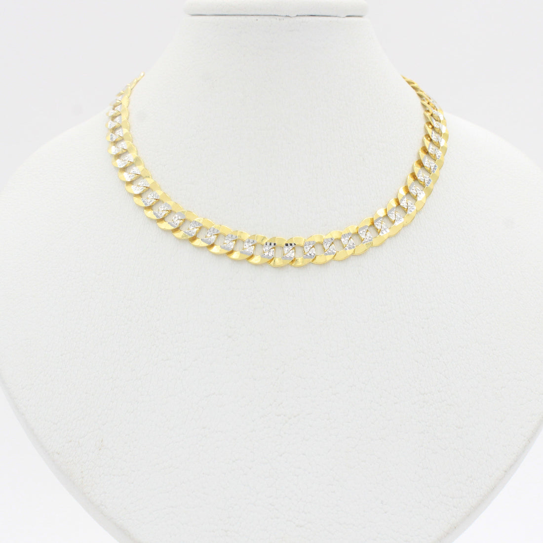 Cadena de Oro 14k Tejido Barbado Sólido con Diamantado de Diseño Martillado mod. 10300