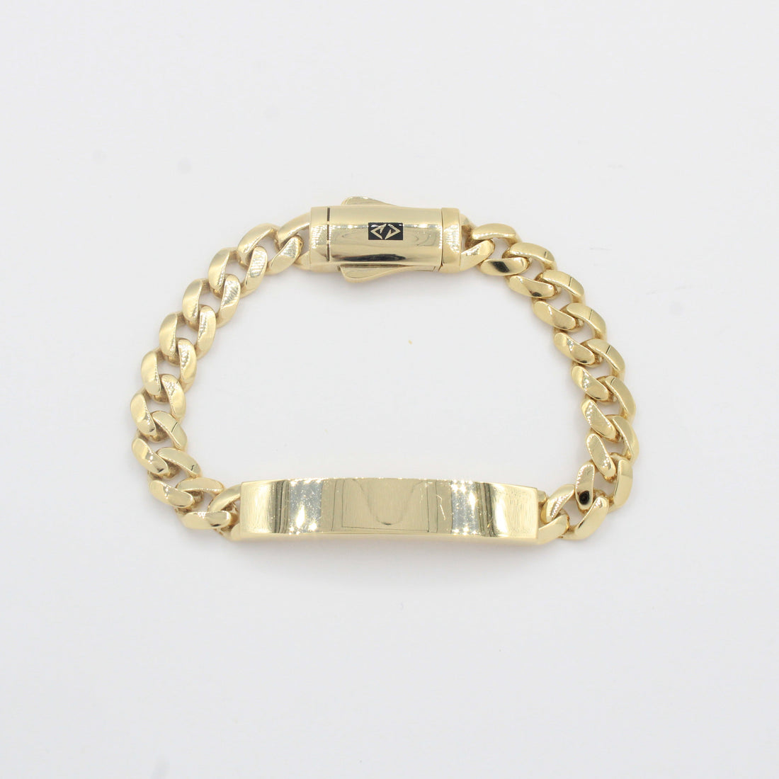 Esclava de Oro 14k Hueca de Tejido Barbado Brillante y Placa Brillante mod. 10301
