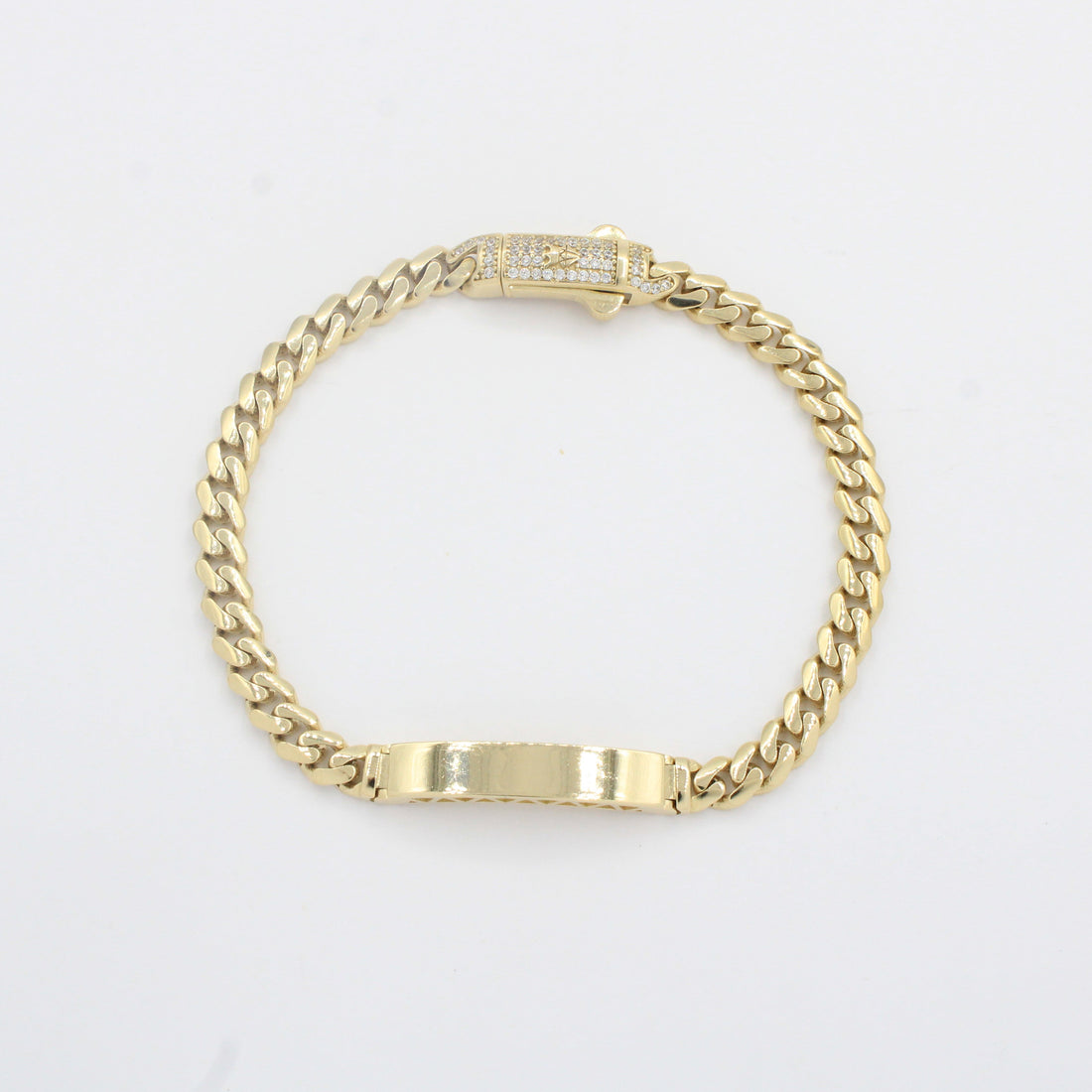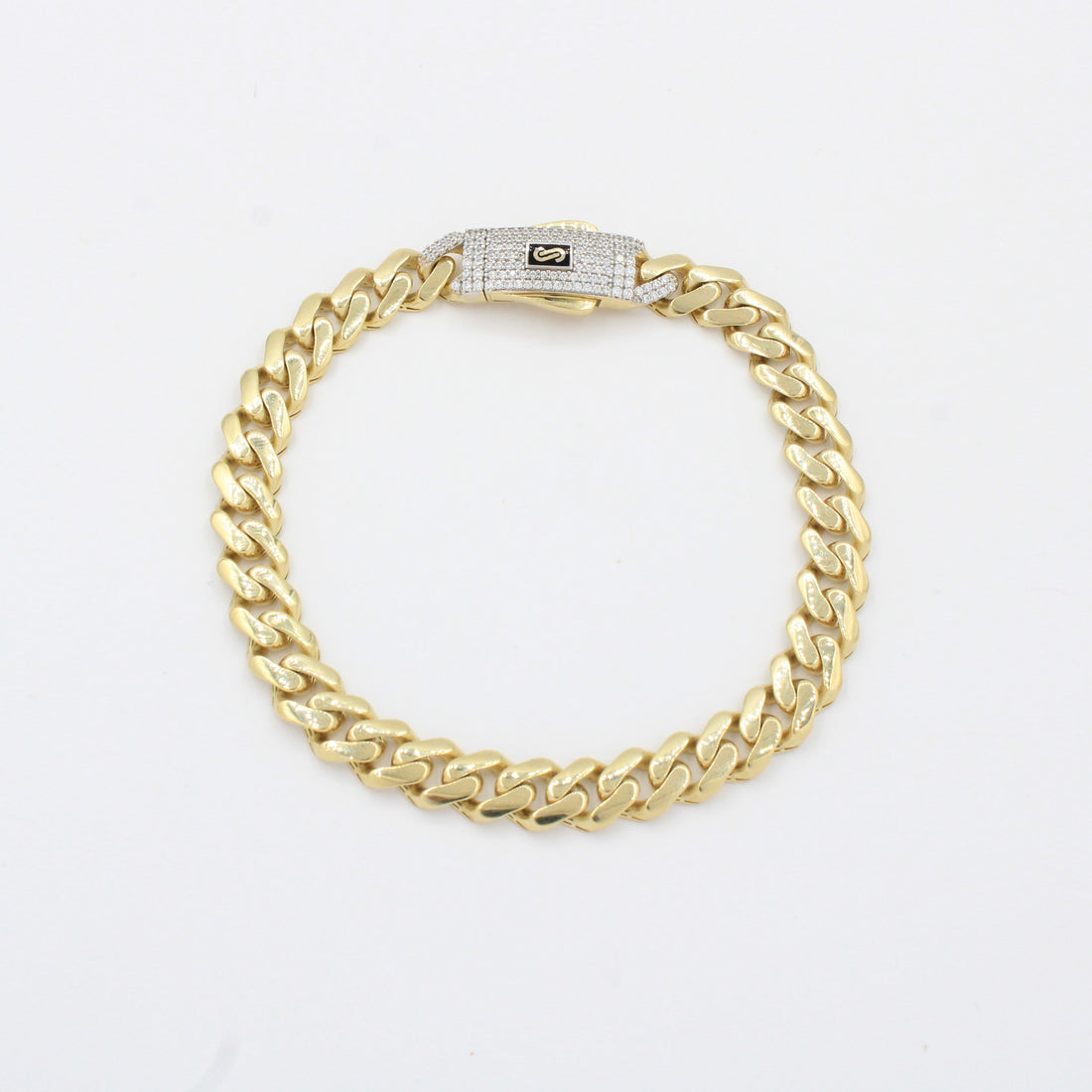 Pulsera Monaco Chain de Oro 14k Hueco Modelo Classic con Broche Pavé Swarovski mod. 10325