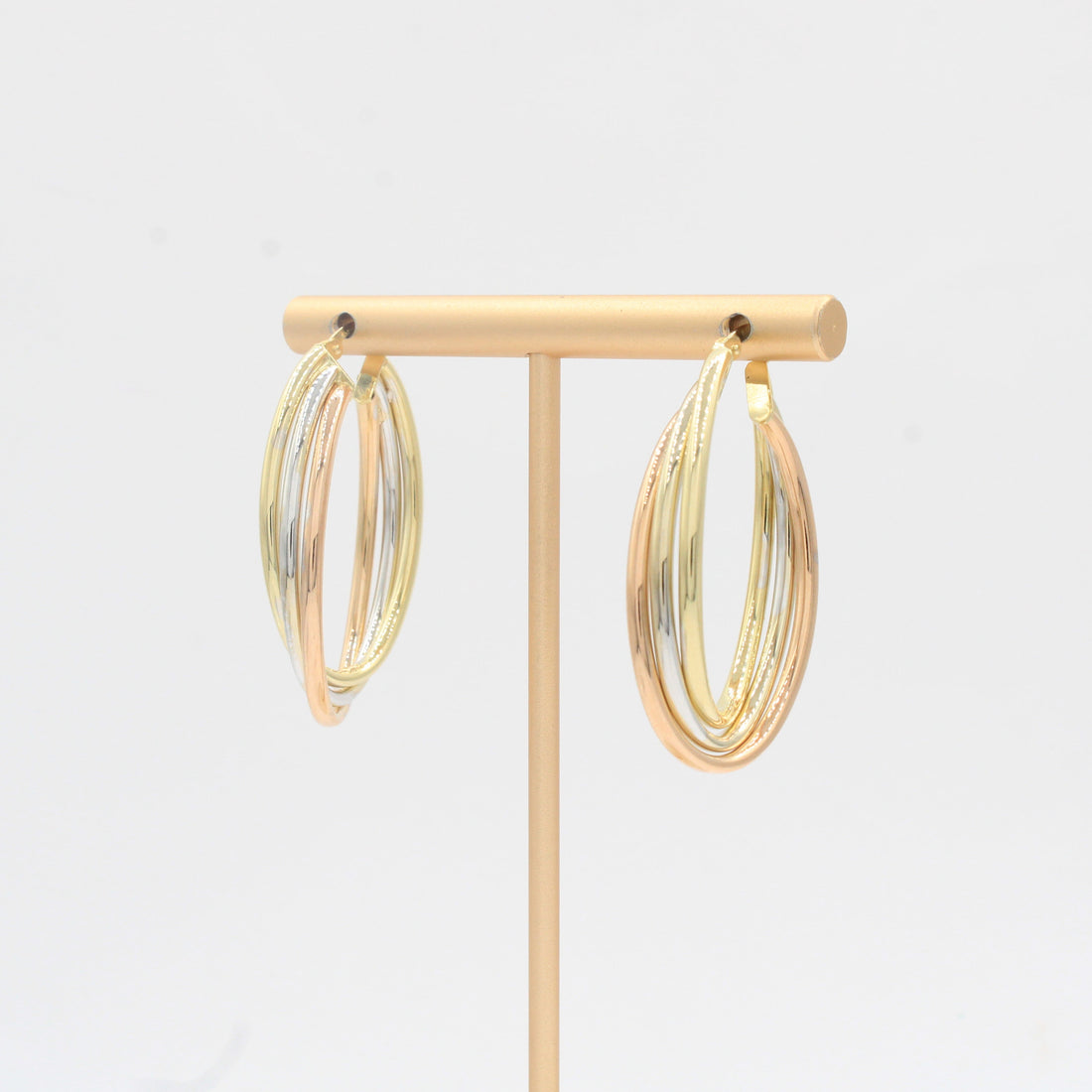 Arracada de Oro 14k Diseño Torzal de Estilo Tubular Hueco en Forma Oval Brillante mod. 10307