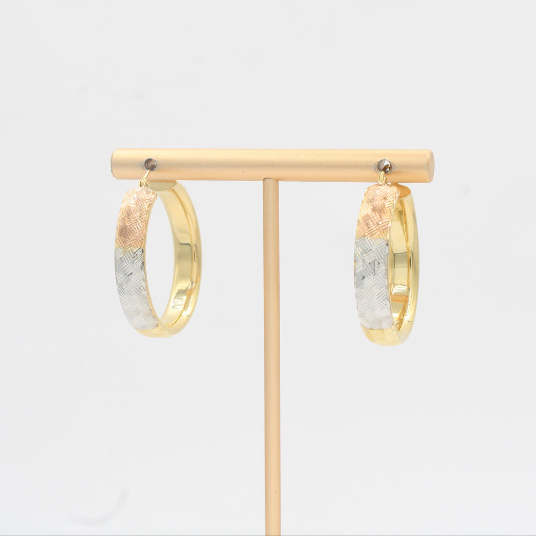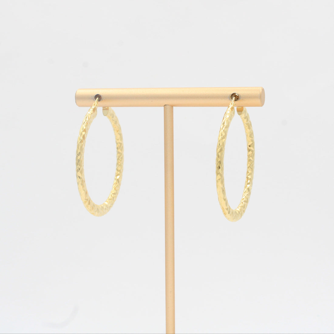 Arracada de Oro 14k Diseño Redondo con Diamantado Fino de Rombo mod. 10313
