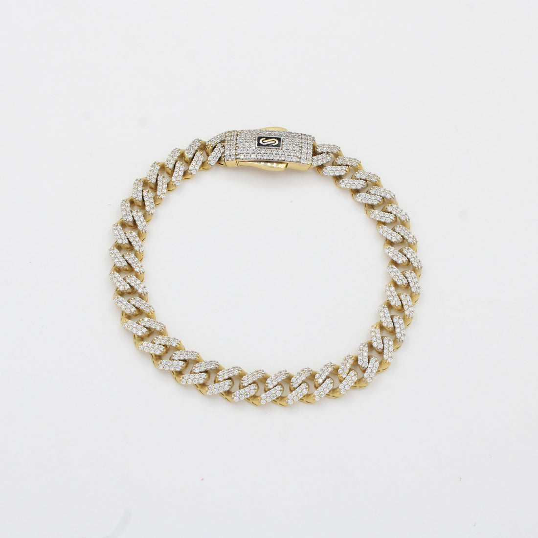 Pulsera Monaco Chain de Oro 14k Hueco Modelo Classic Pavé Swarovski mod. 10326