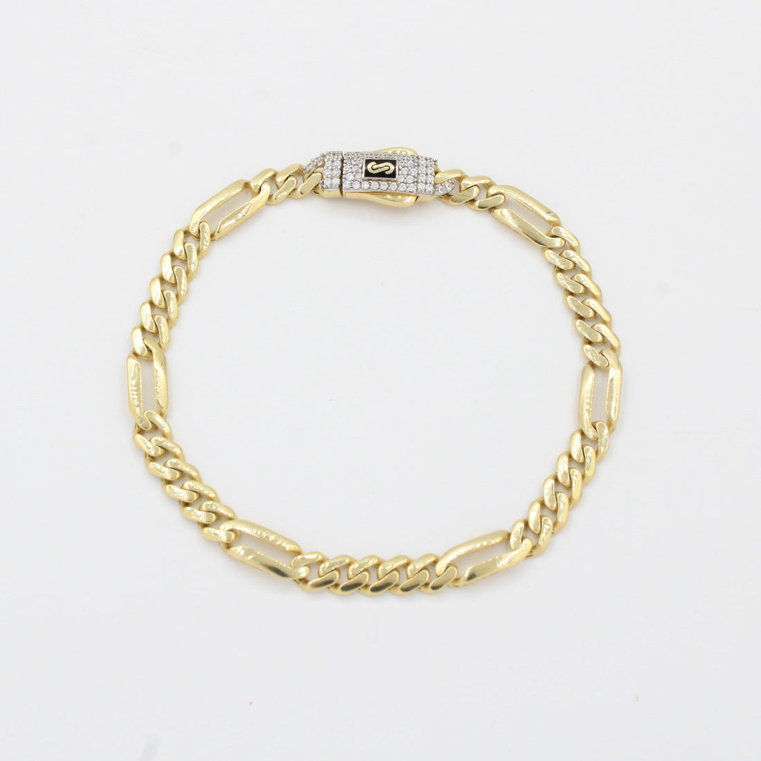 Pulsera Monaco Chain de Oro 14k Hueco Modelo Figaro 5x1 con Broche Pavé Swarovski mod. 10327