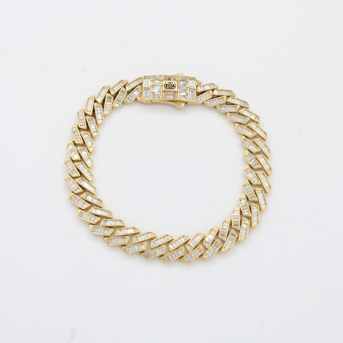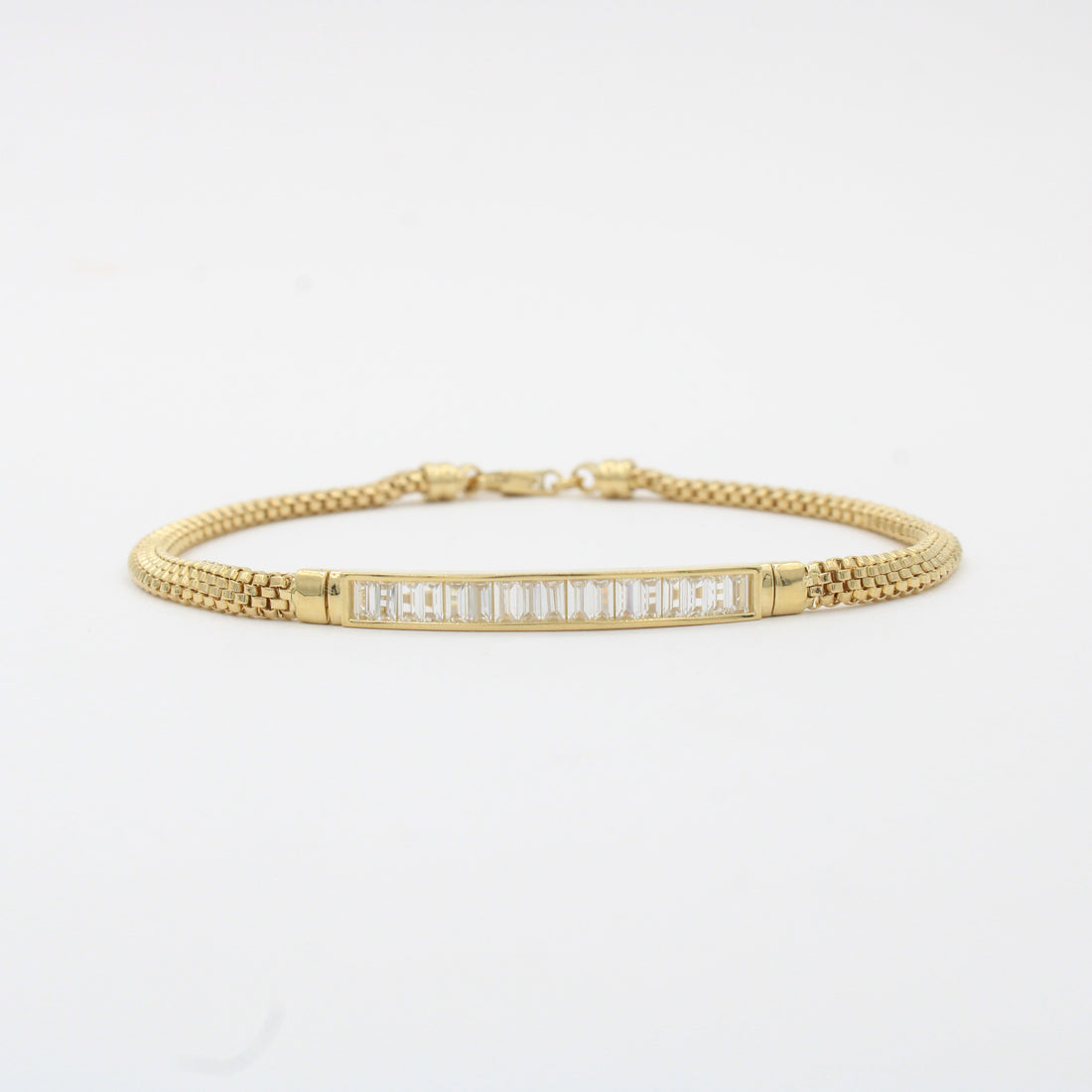Pulsera de Oro 14k Tejido Barbado con Incrustaión Especial de Zirconias Corte Baguette mod. 10330