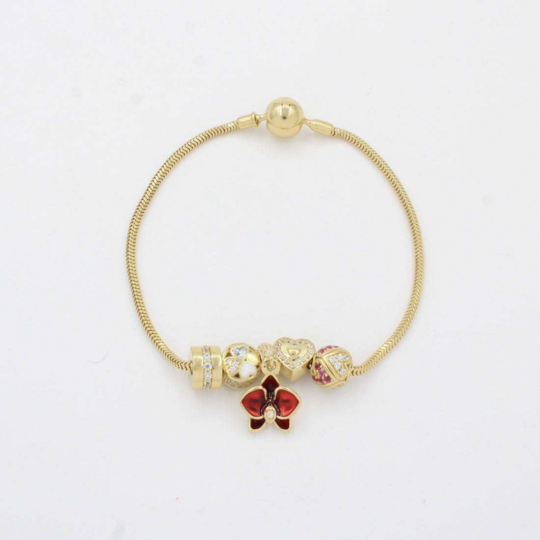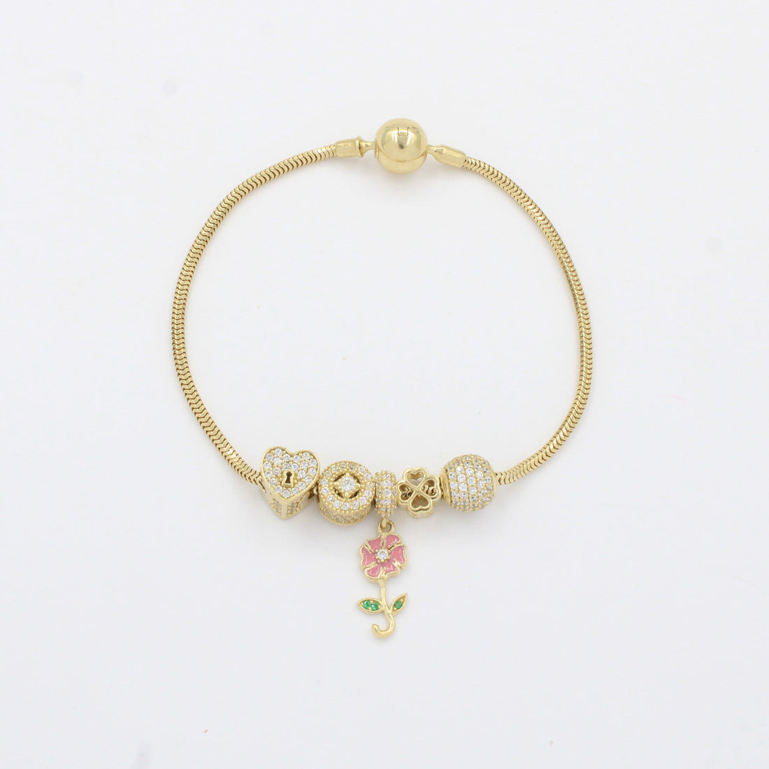 Pulsera de Oro 14k Tejido Cola de Rata con Dijes Charm Especiales con Zirconias mod. 10332
