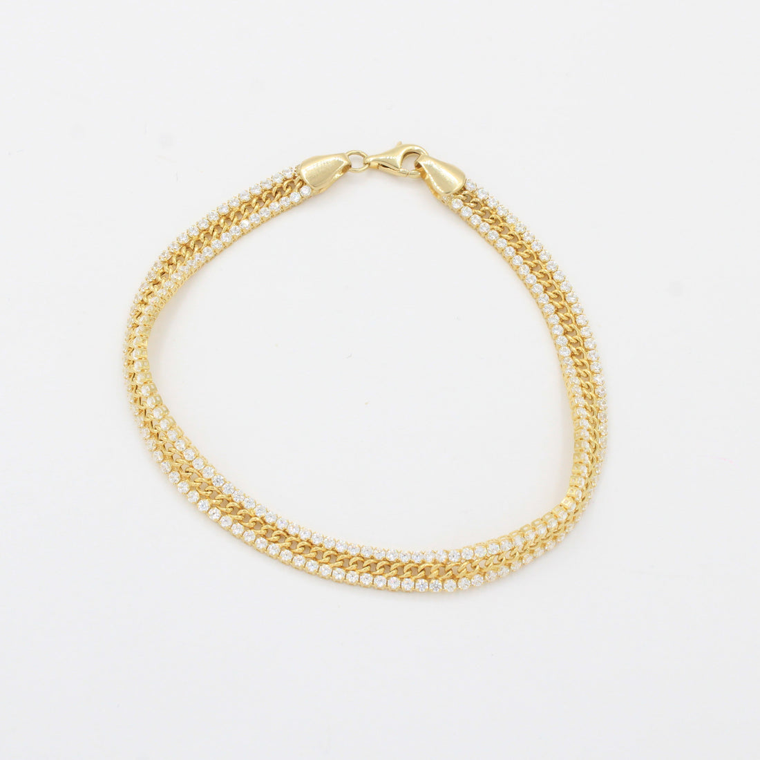 Pulsera de Oro 14k Tejido Fino con Laterales Incrustados de Zirconias Finas mod. 10338