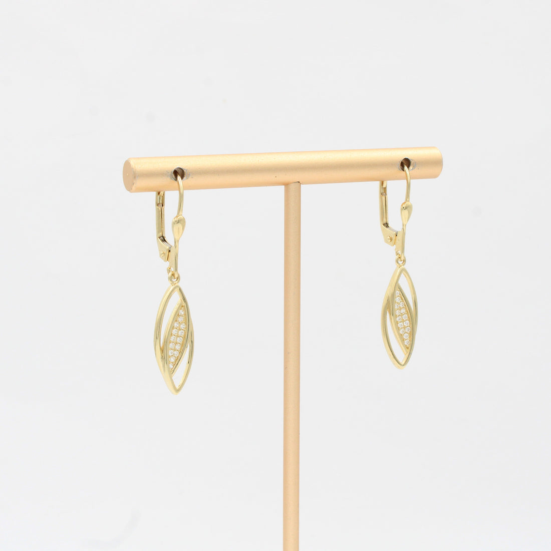 Arete Largo de Oro 14k Diseño Doble Oval con Zirconias mod. 10345