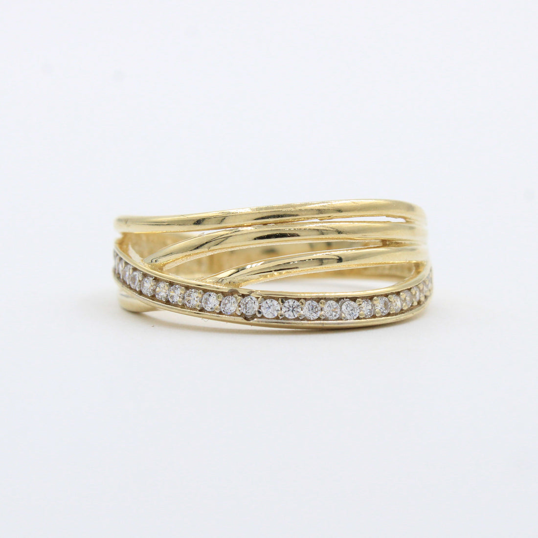 Anillo de Oro 14k de Diseño Cruzado con Diamantado mod. 10278
