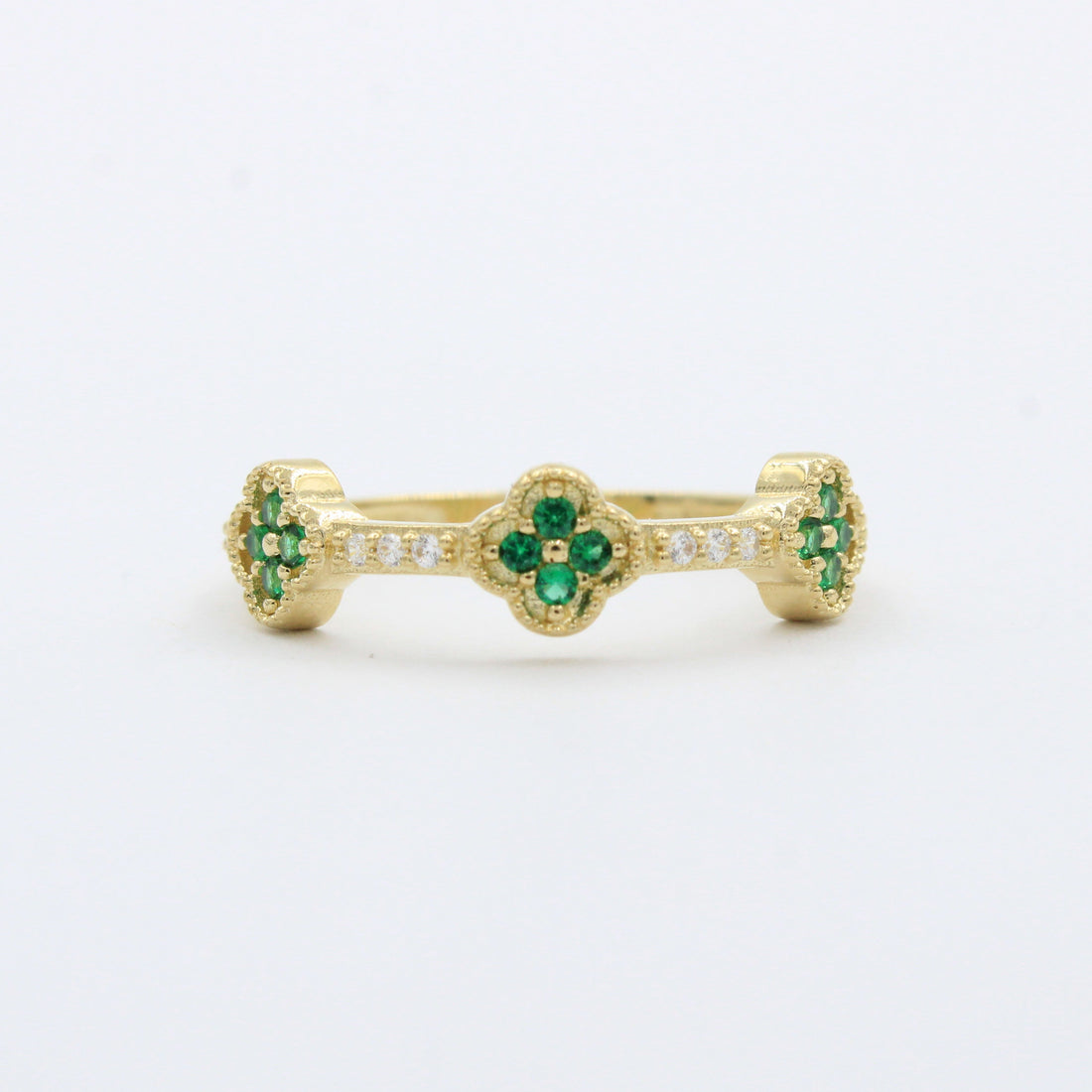Anillo de Oro 14k con Trébolesde Zirconia Verde mod. 10272