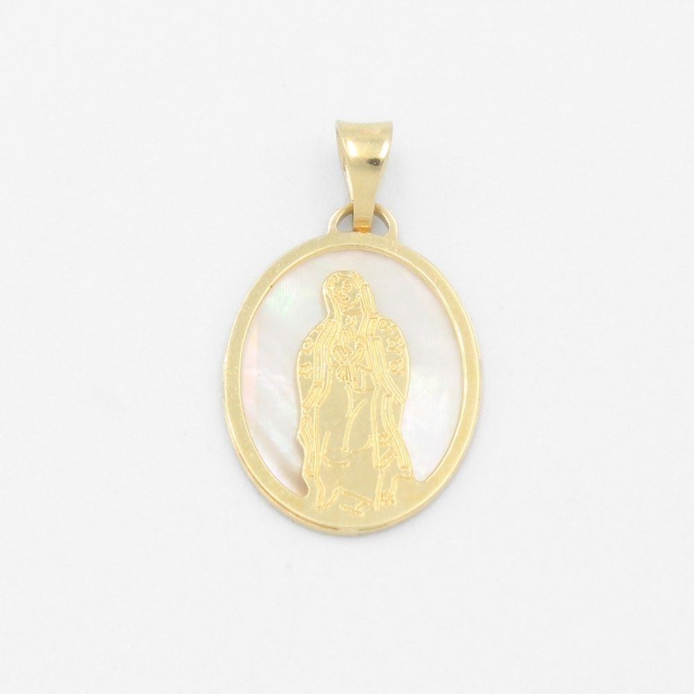 Medalla de Oro 14k con Virgen Guadalupe Incrustada en Madre Perla mod. 9539