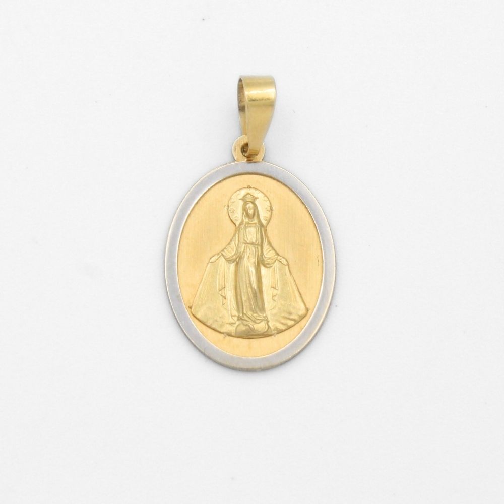 Medalla de Oro 14k Virgen Milagrosa con Diseño Brillante Bicolor mod. 9860