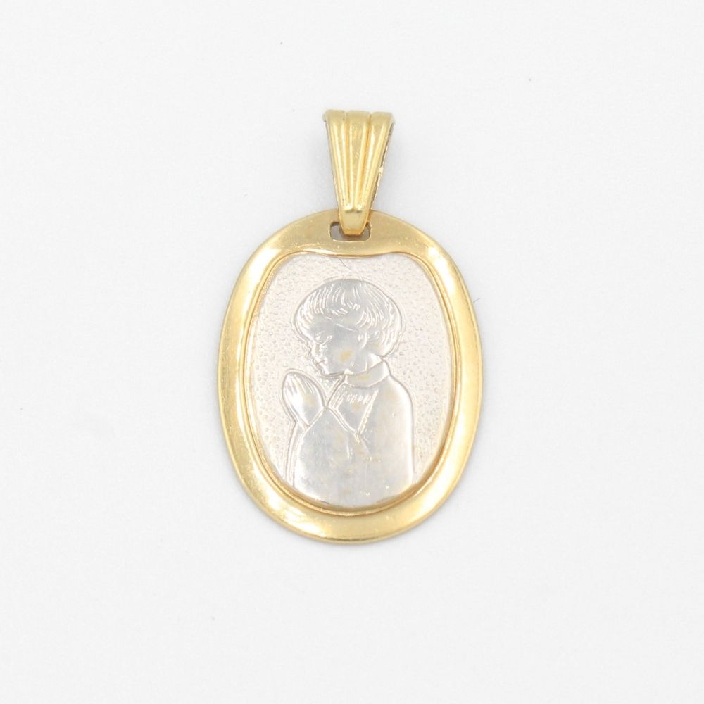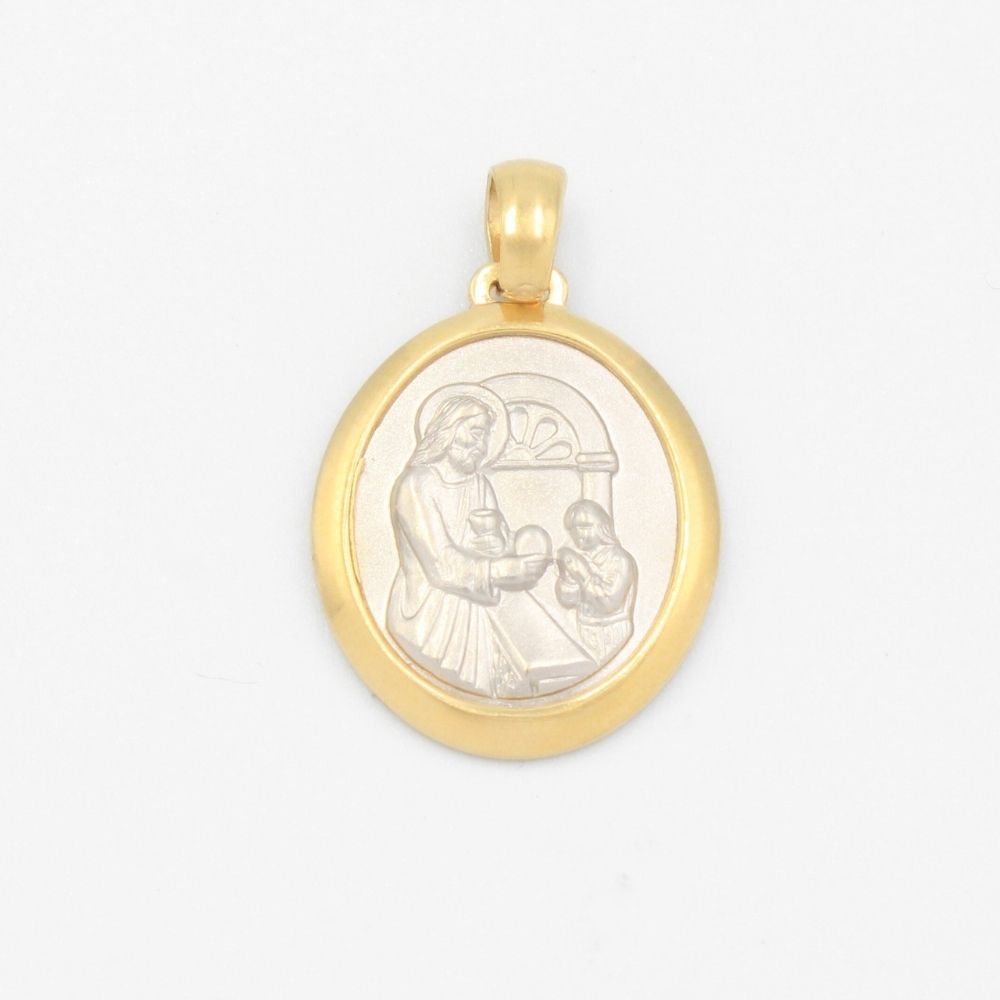 Medalla de Oro 14k para Primera Comunión con Diseño de Niño en Acto de Comunión en Color Florentino mod. 9893