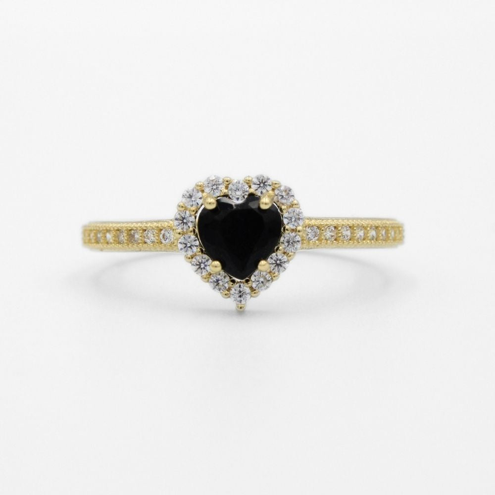 Anillo de Oro 14k Diseño Elegante con Zirconia de Corazón Detallado con Incrustación de Zirconias Brillantes mod. 9737