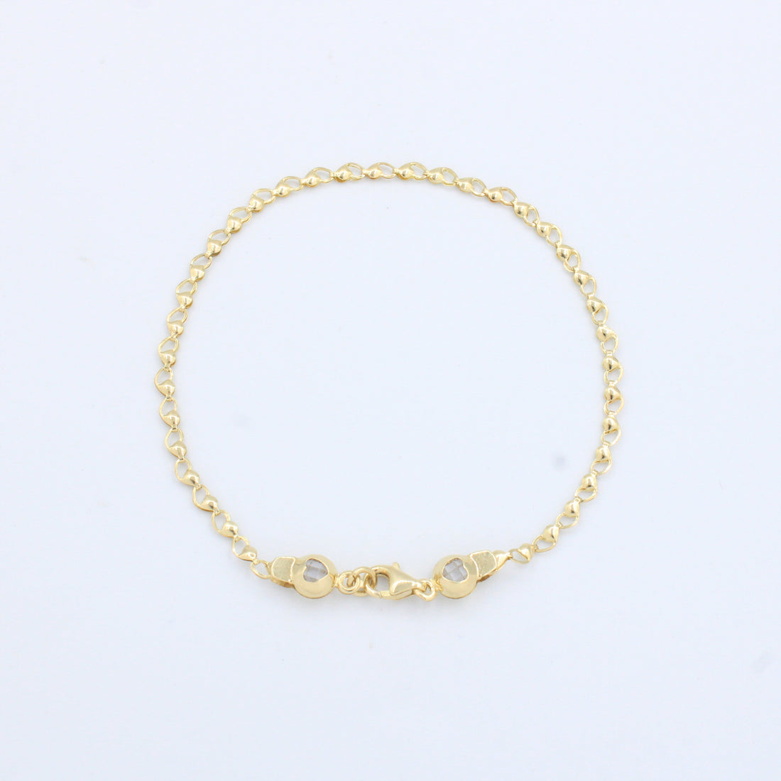 Pulsera de Oro 14k Tejido Hueco de Esperas Oval con Corazones Diamantados mod. 10335