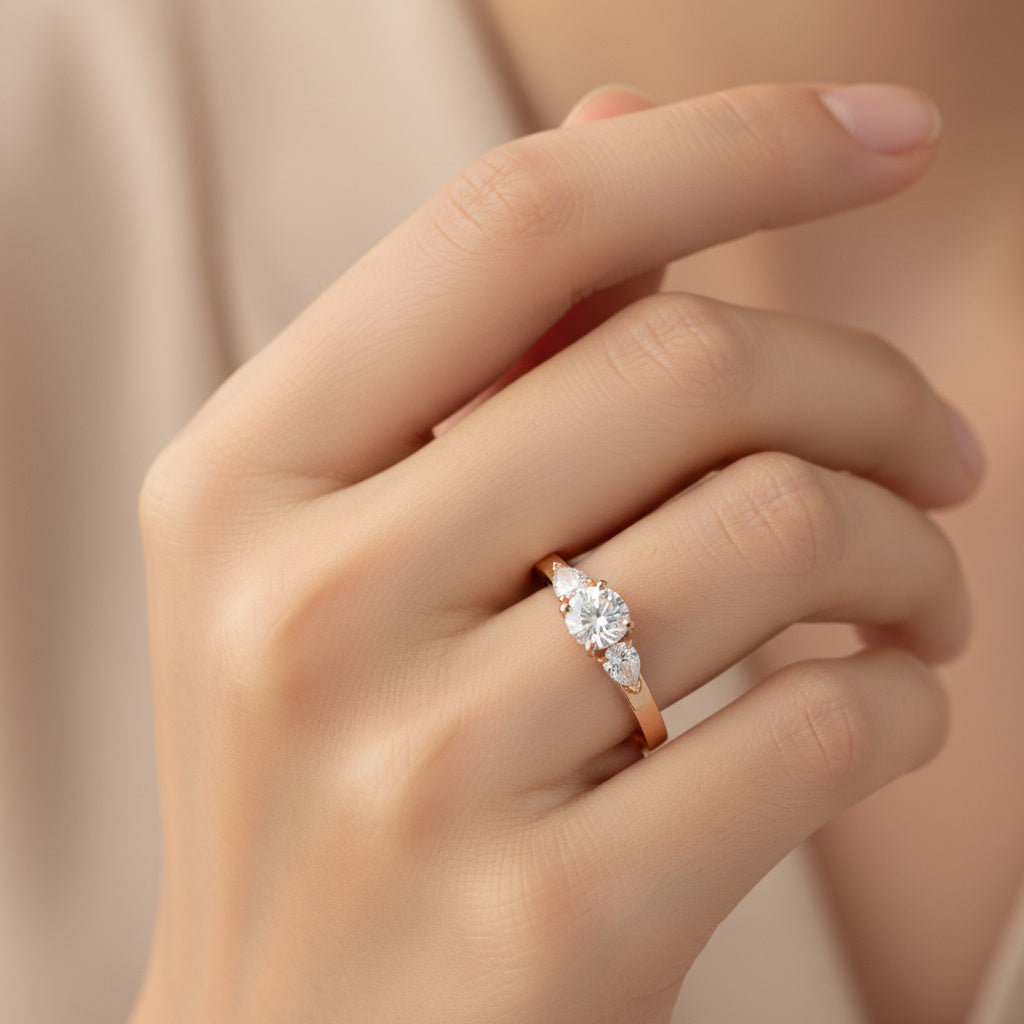 Anillo de Compromiso en Oro 14k con Zirconias Finas en Diseño de Flor mod. 10408