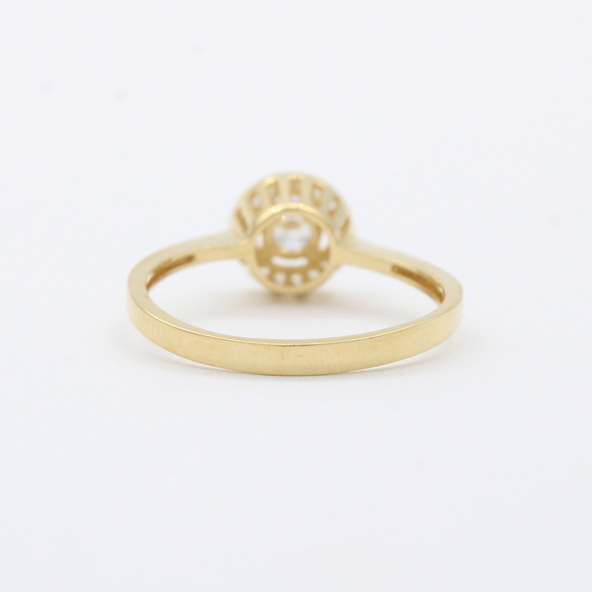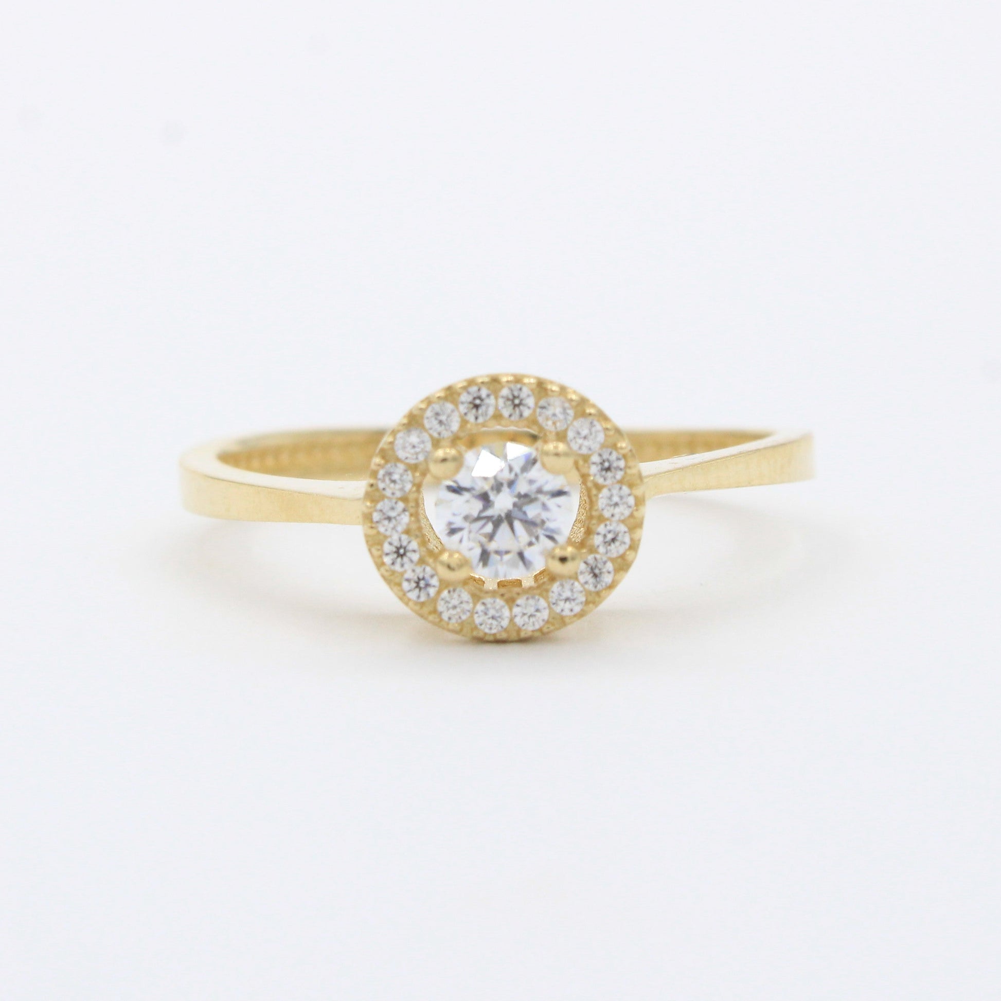 Anillo de Compromiso en Oro 14k Diseño Central Circular con Zirconias Brillantes mod. 10418
