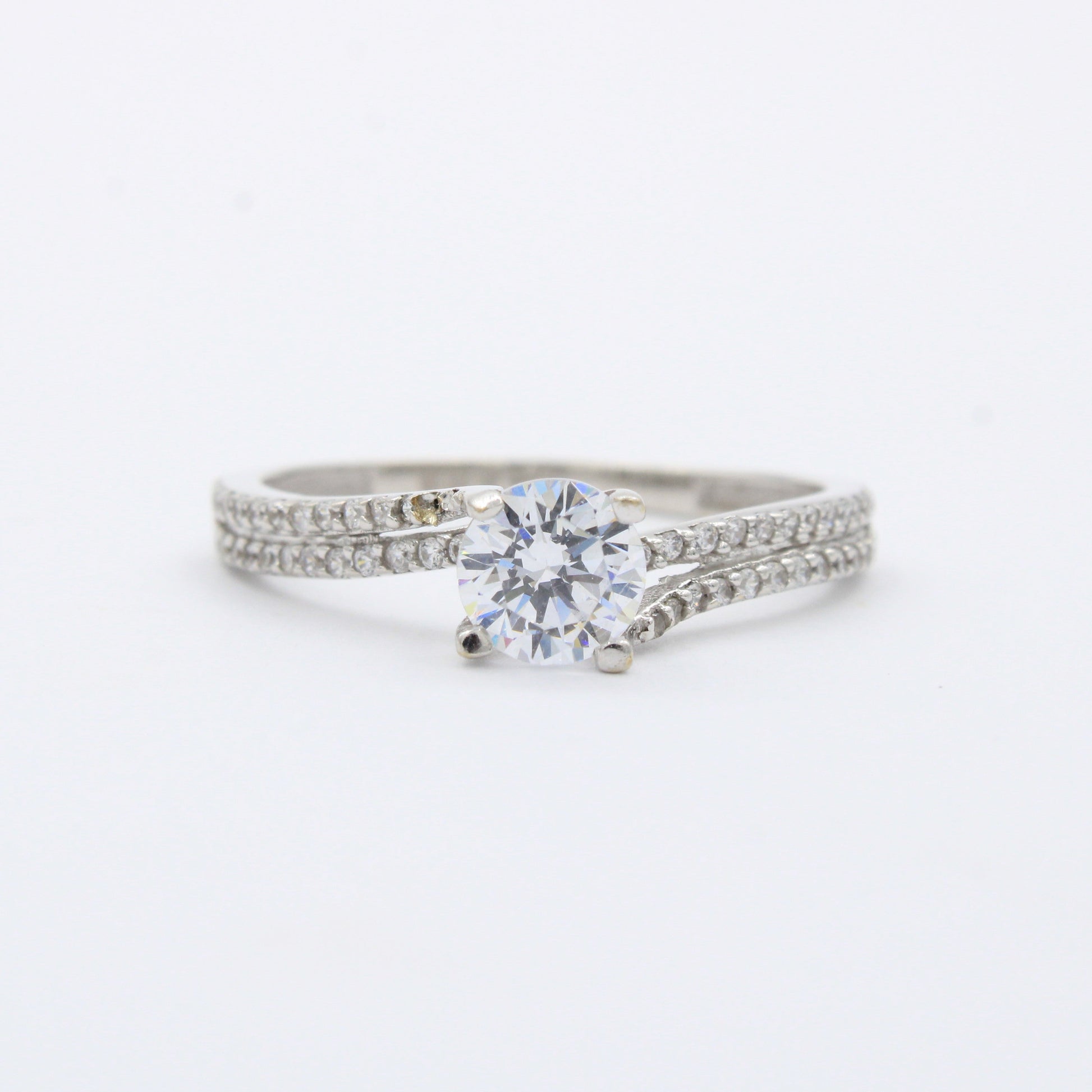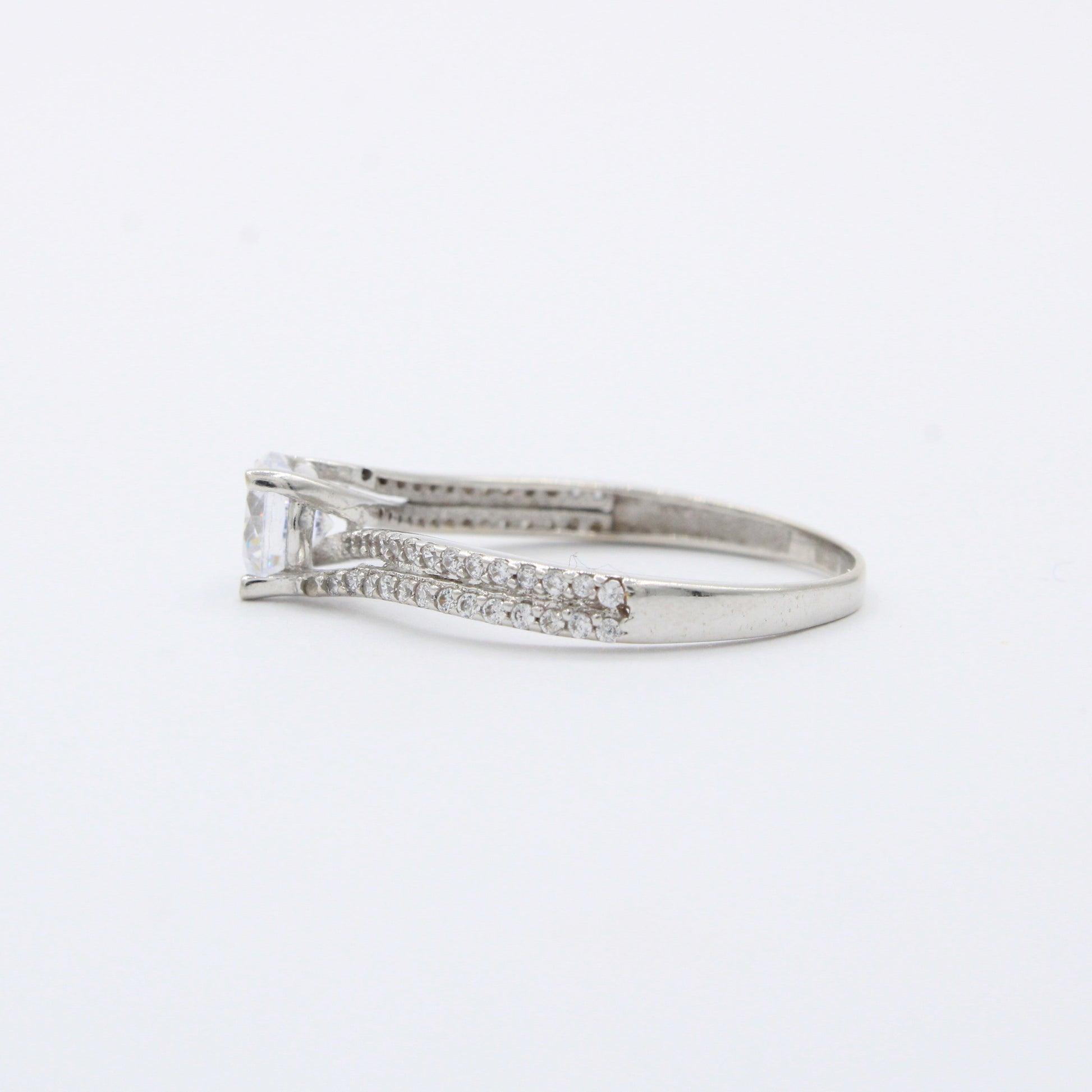 Anillo de Compromiso en Oro 14k Diseño Curvo Incrustado con Zirconias mod. 10399