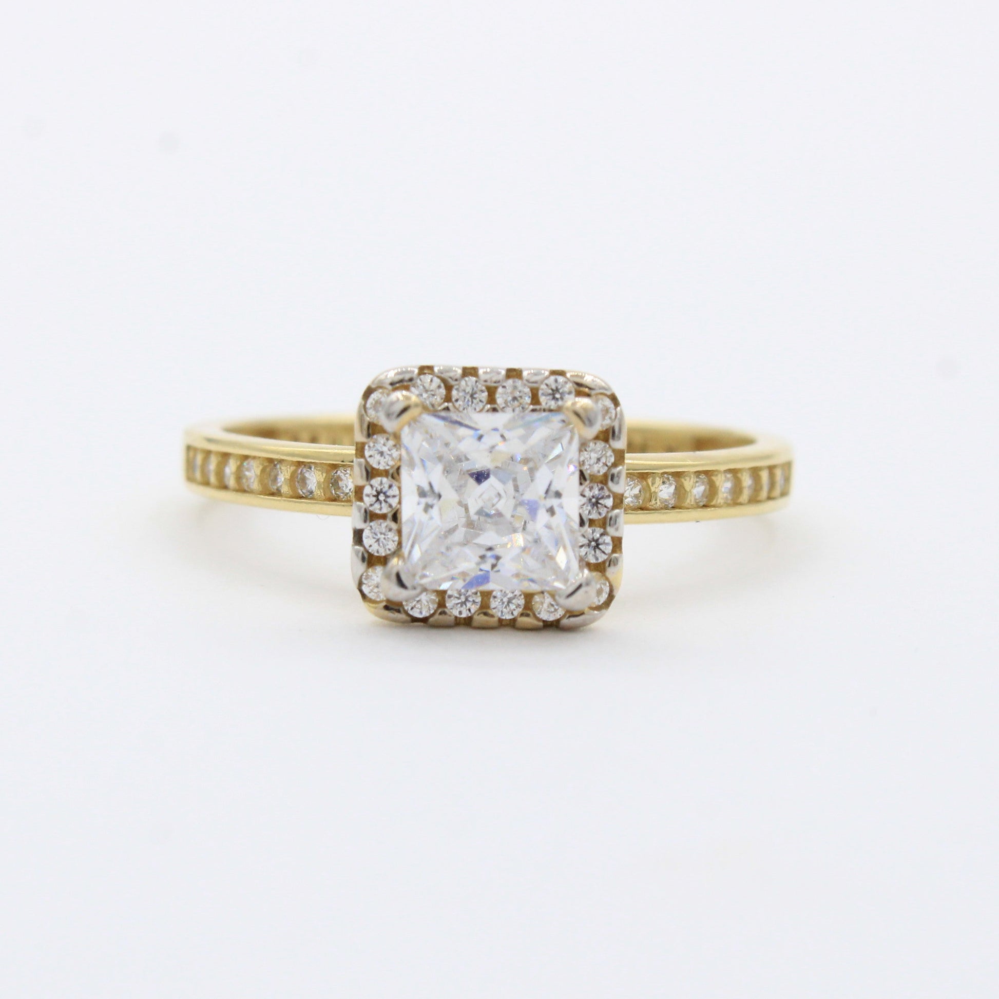 Anillo de Compromiso en Oro 14k Modelo Elegante con Incrustación Especial de Zirconias mod. 10411