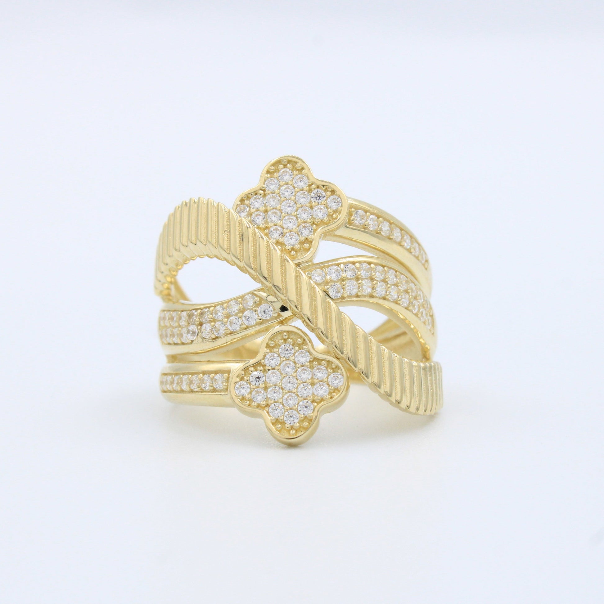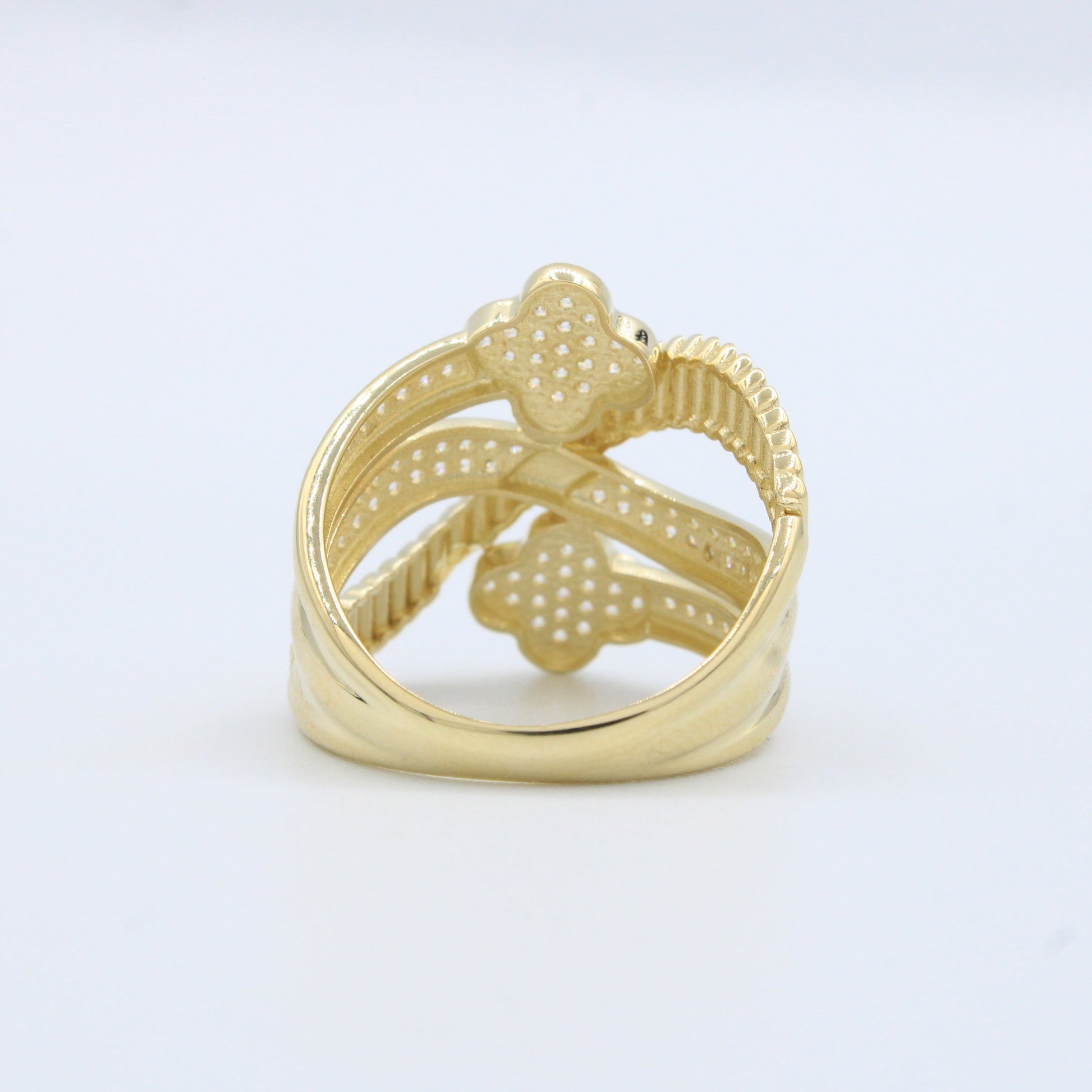 Anillo de Oro 14k con Tréboles Enredados y Zirconias mod. 10192