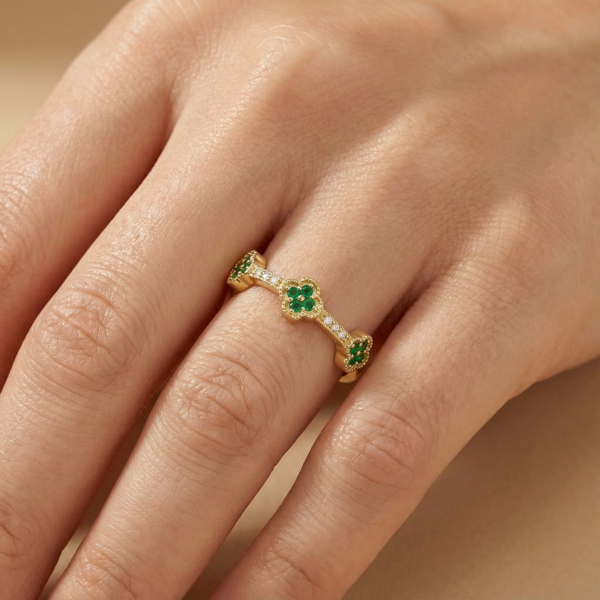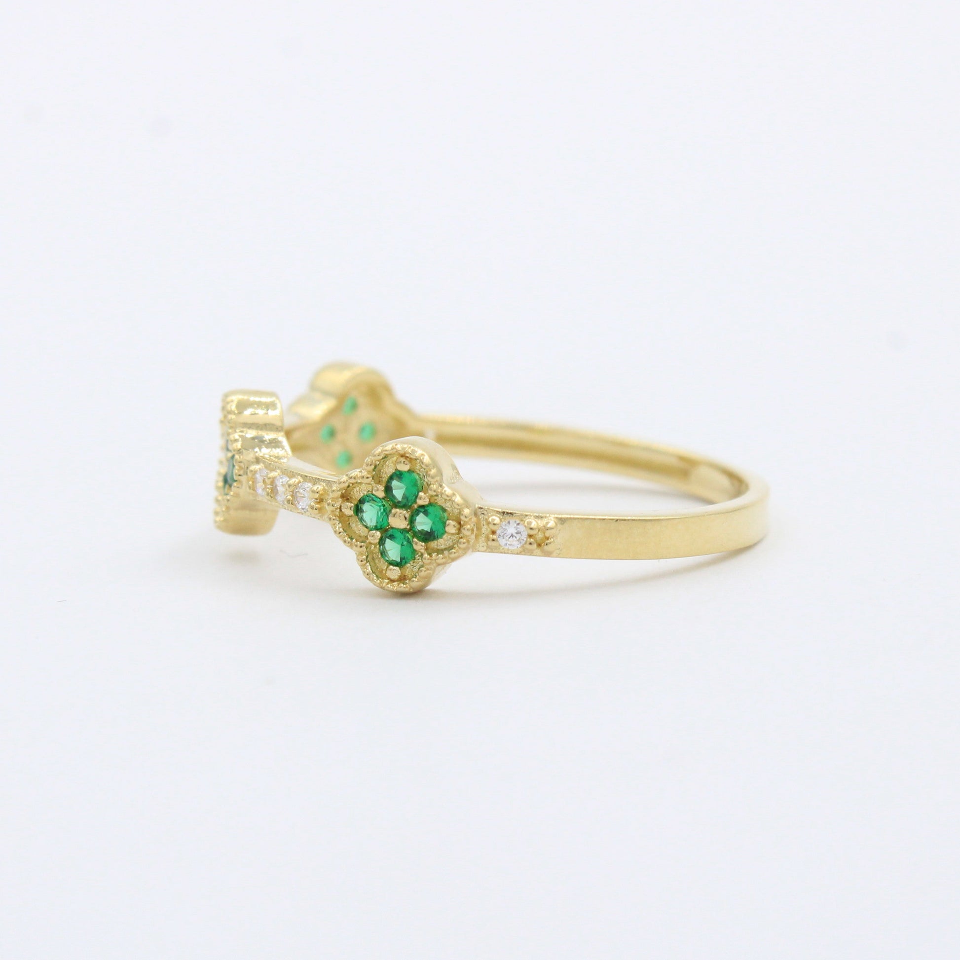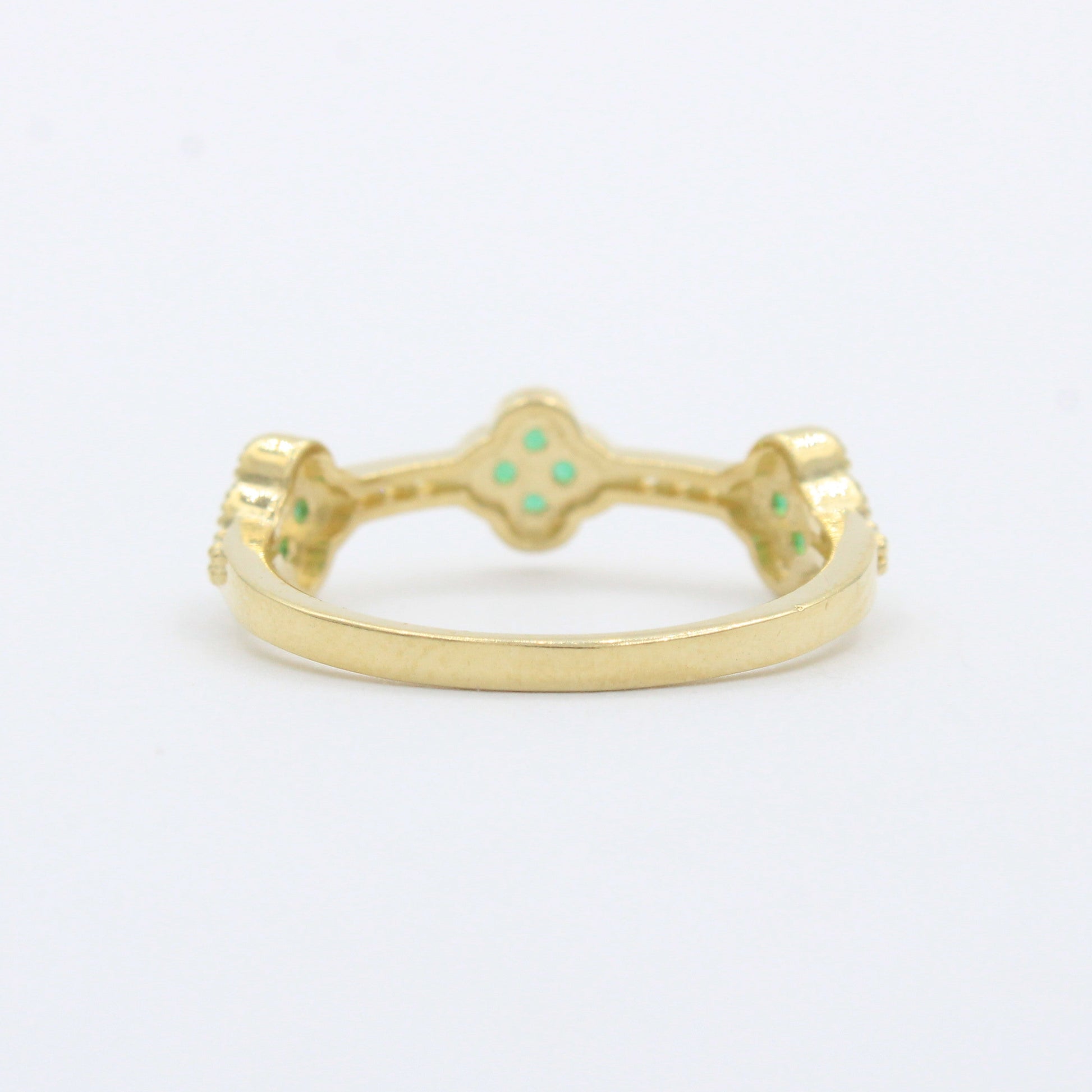 Anillo de Oro 14k con Trébolesde Zirconia Verde mod. 10272