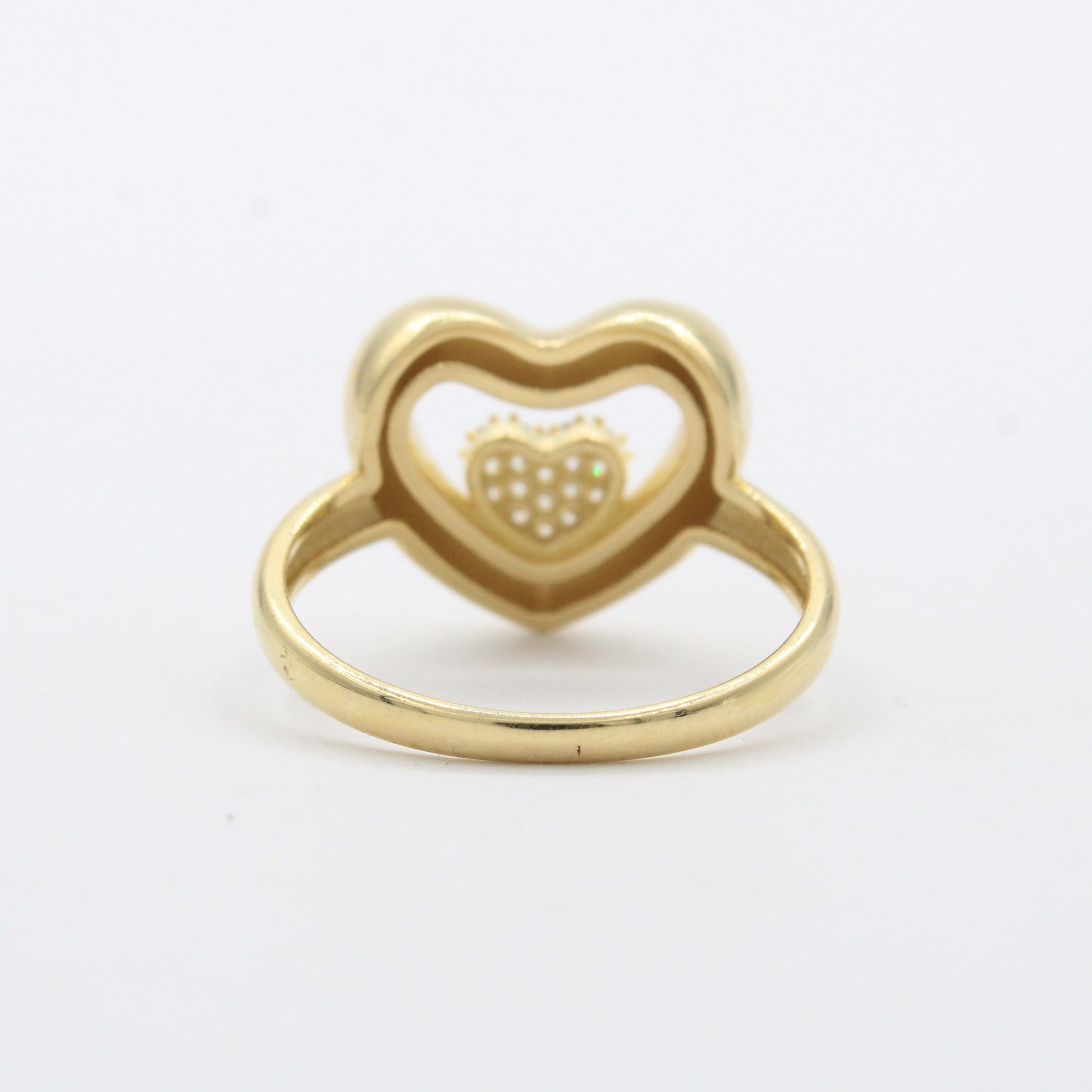 Anillo de Oro 14k Corazón Estilo Inflado con Corazón Pequeño Incustado con Zirconias mod. 10482