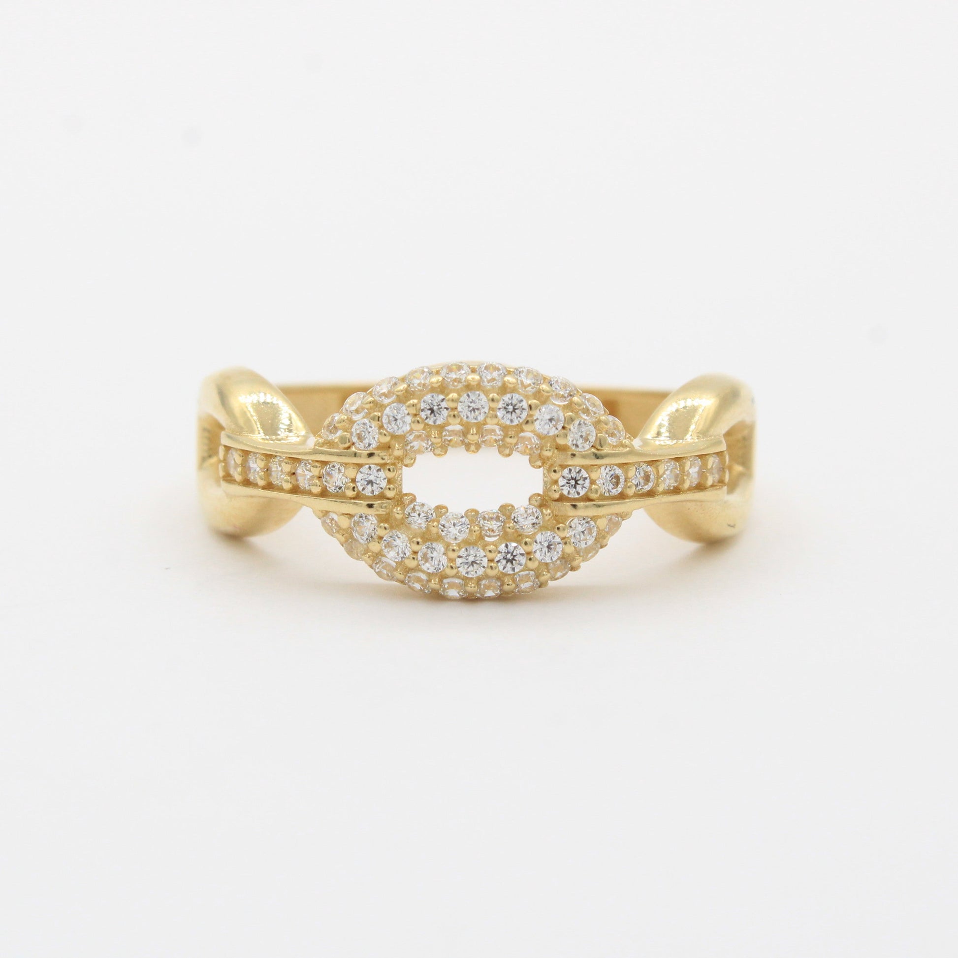 Anillo de Oro 14k Diseño Elegante con Ovalos Brillantes y Zirconias mod. 10359
