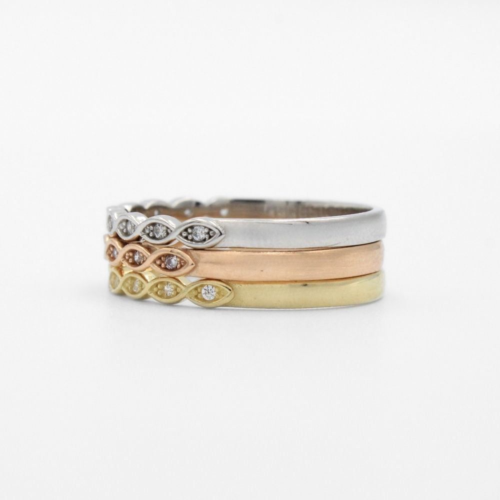 Anillo de Oro 14k Diseño Fin de Semana con Incrustación de Zirconias mod. 9735