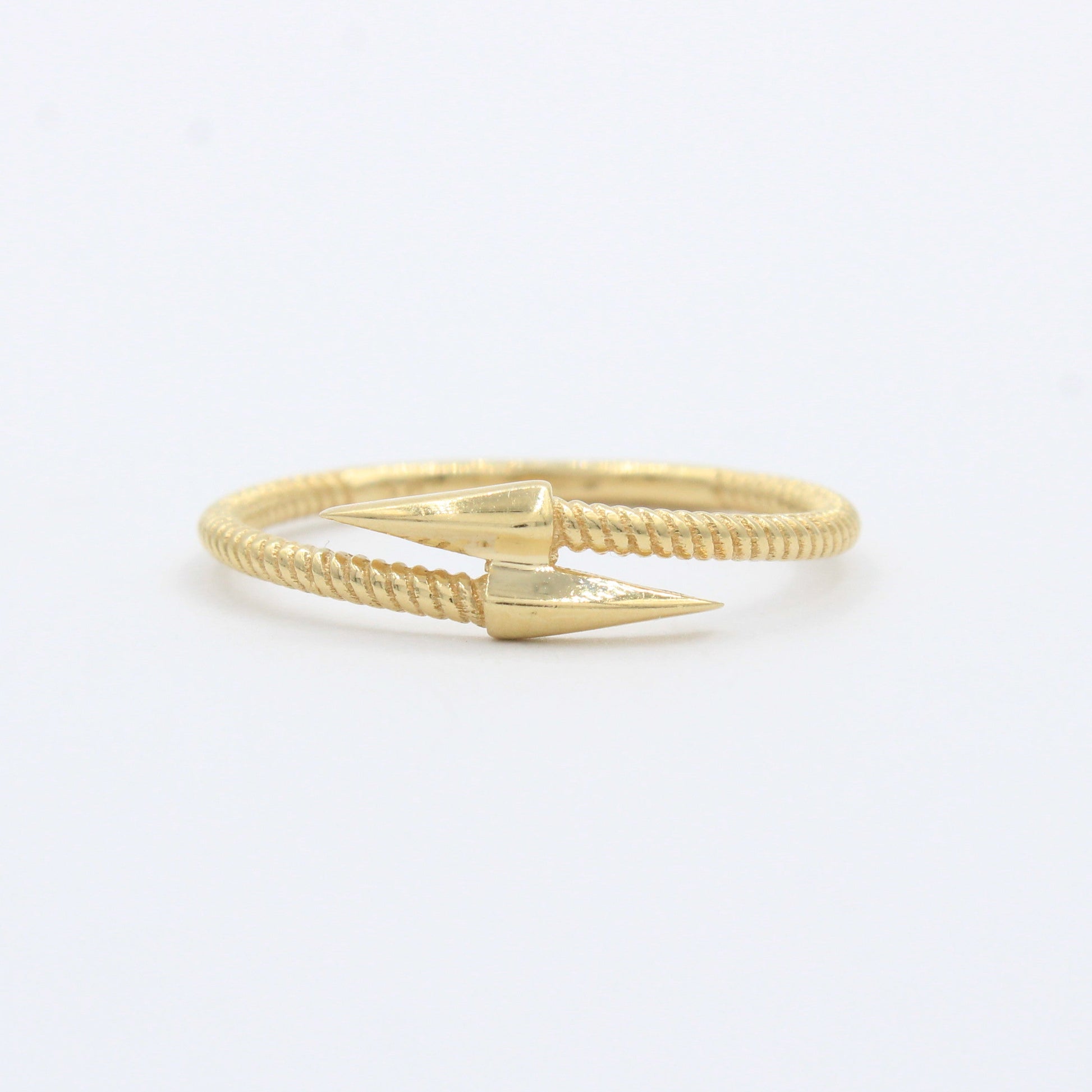 Anillo de Oro 14k Flecha de Doble Punta de Diseño Enrollado mod. 10283