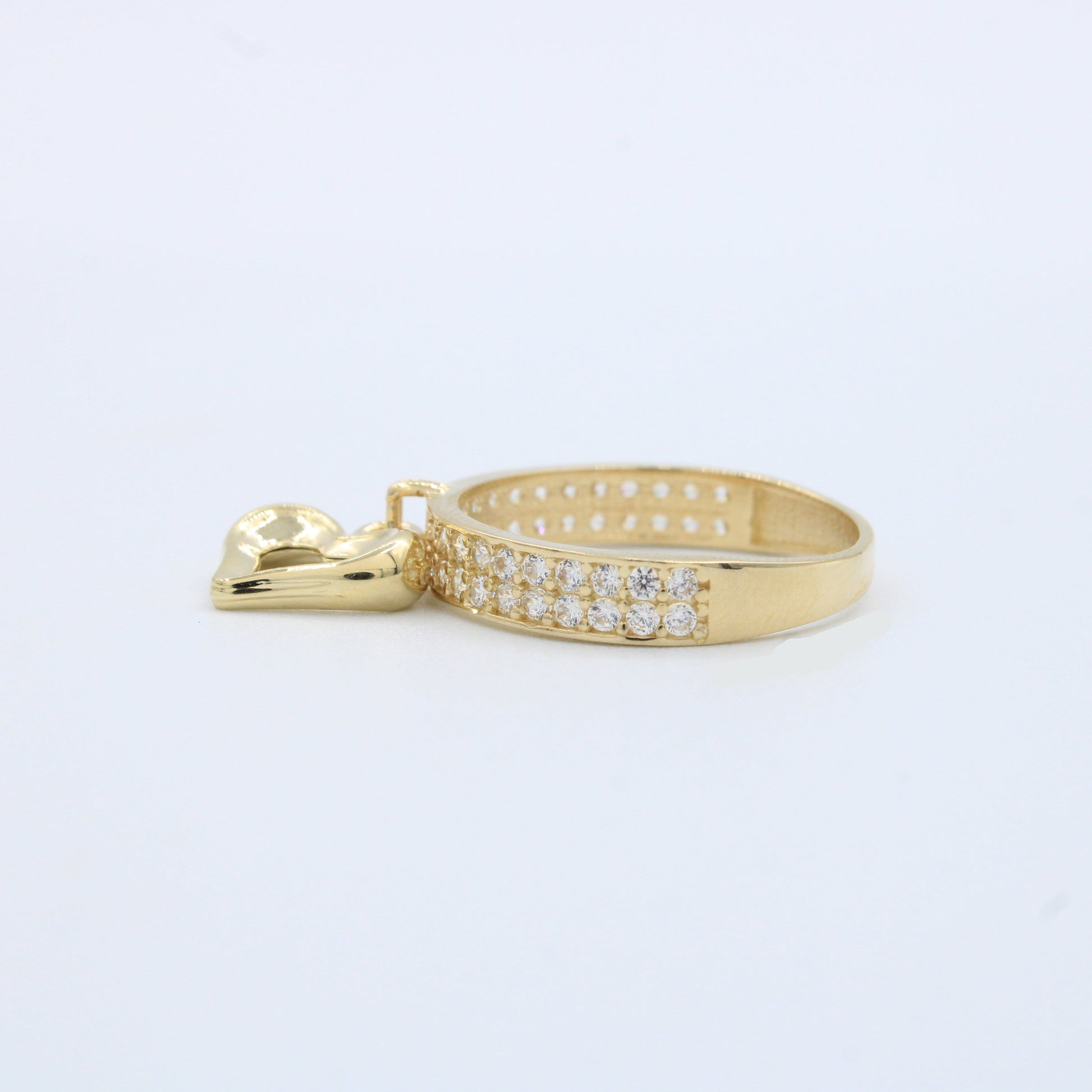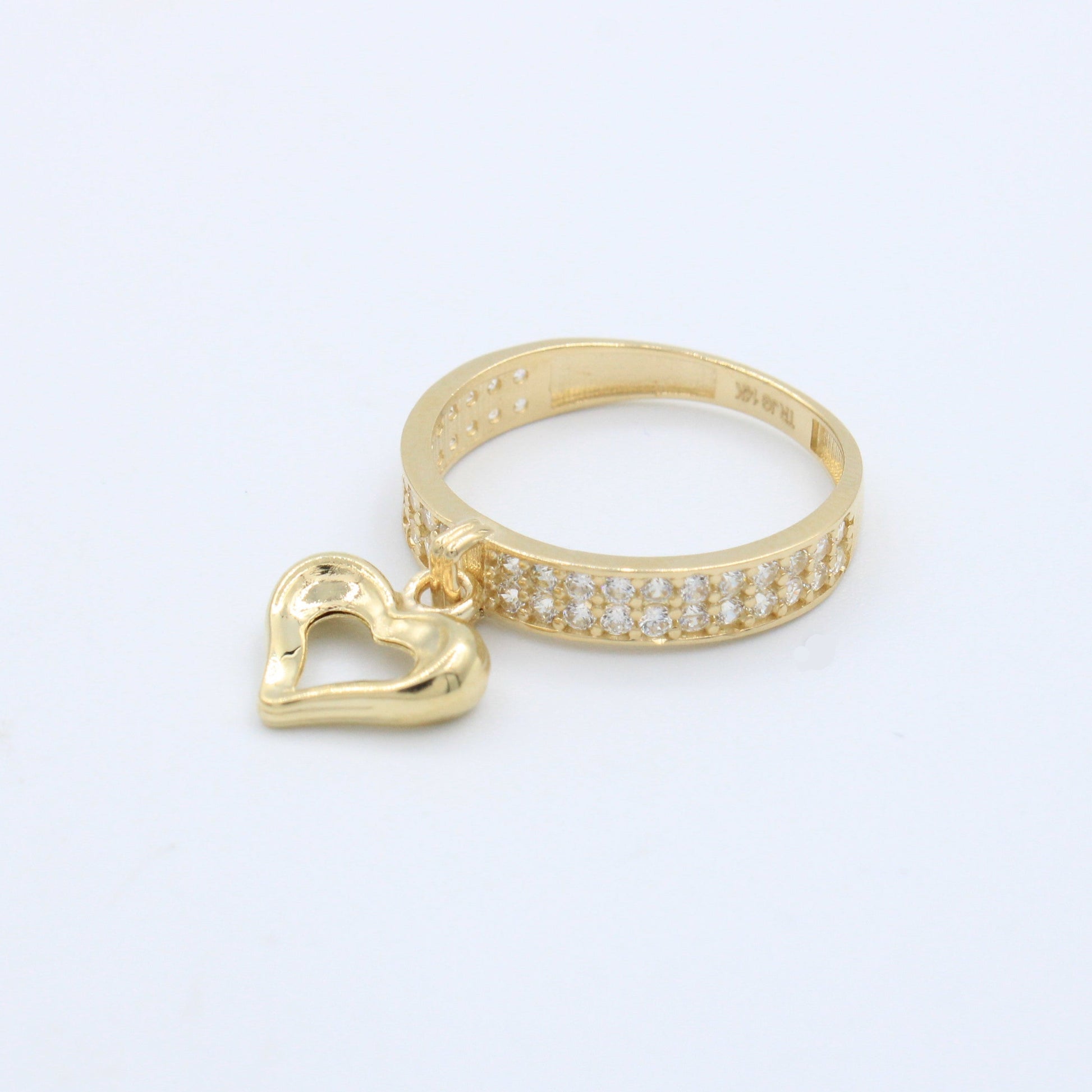Anillo de Oro 14k Incrustado de Zirconias con Dije de Corazón Hueco mod. 10200